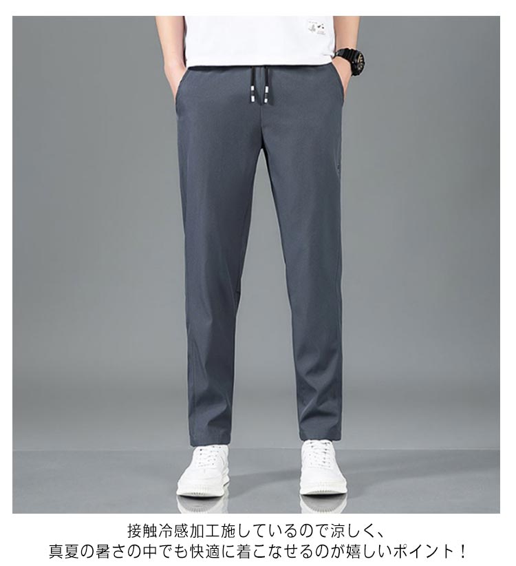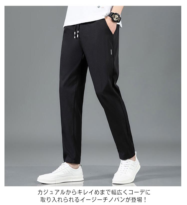 チノパン イージーパンツ メンズ チノパンツ ストレッチパンツ ズボン 接触冷感 スリム 速乾 ドライ UVカット アイスシルクパンツ 大きいサイズ 夏 カジュアル 涼しい ゴルフパンツ ゴルフウェア 伸縮 ゴムウエスト パンツ