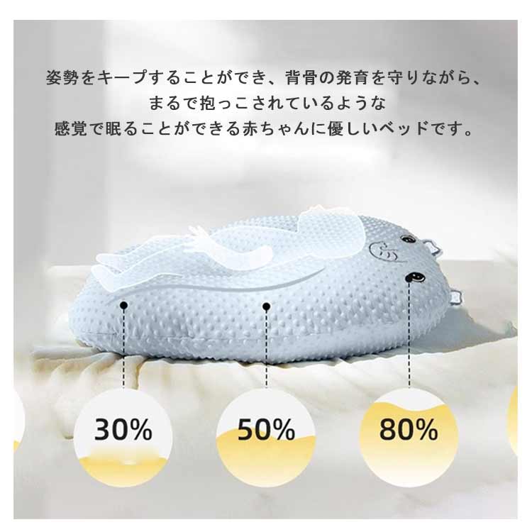 | 15度のゆるやかな角度が赤ちゃんの吐き戻しや鼻づまりを和らげます。 腰のあたりから寝かせてゆったりと頭をあげることで、赤ちゃんへの負担もなく、吐き戻しや鼻づまりを和らげ呼吸をスムーズに。 姿勢をキープすることができ、背骨の発育を守りながら、まるで抱っこされているような感覚で眠ることができる赤ちゃんに優しいベッドです。 おしりと背中がフィット、寝姿勢から不安を取り除き、安心して眠れる。 カバーを剥して洗濯できるので、赤ちゃんが汗をかいたときや吐き戻ししたときに簡単に洗えるので便利! ご出産のお祝いや、お誕生日のプレゼントに最適! | |
