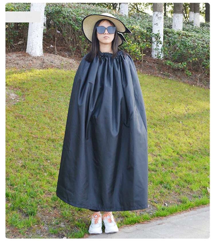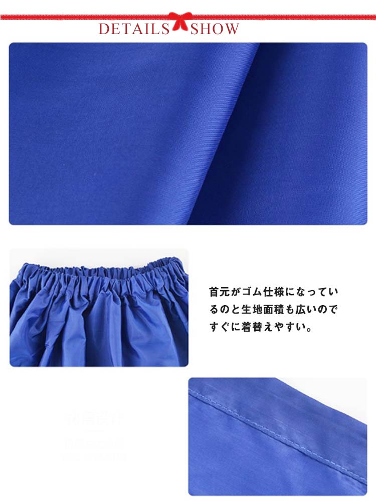 | 収納ポケットが付いたお酒落なお着替え用ケープです! 災害時の簡易更衣室代わりに防災グッツとしても役立ちます。 首元がゴム仕様になっているのと生地面積も広いのですぐに着替えやすい。 男女兼用タイプで、お子様から大人まで使用可能です。 社交ダンス競技会場の限られたスペースで、さっとお着替えができます。 | |