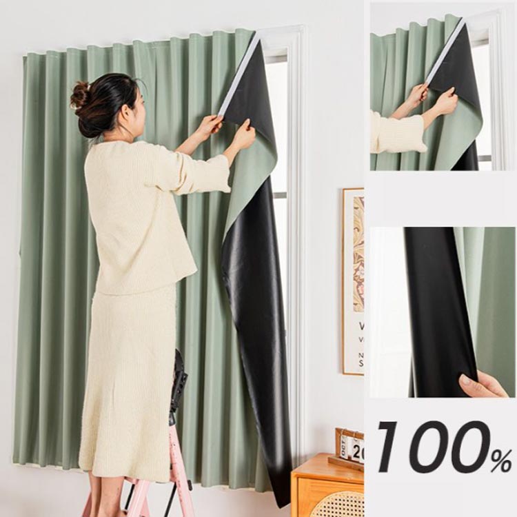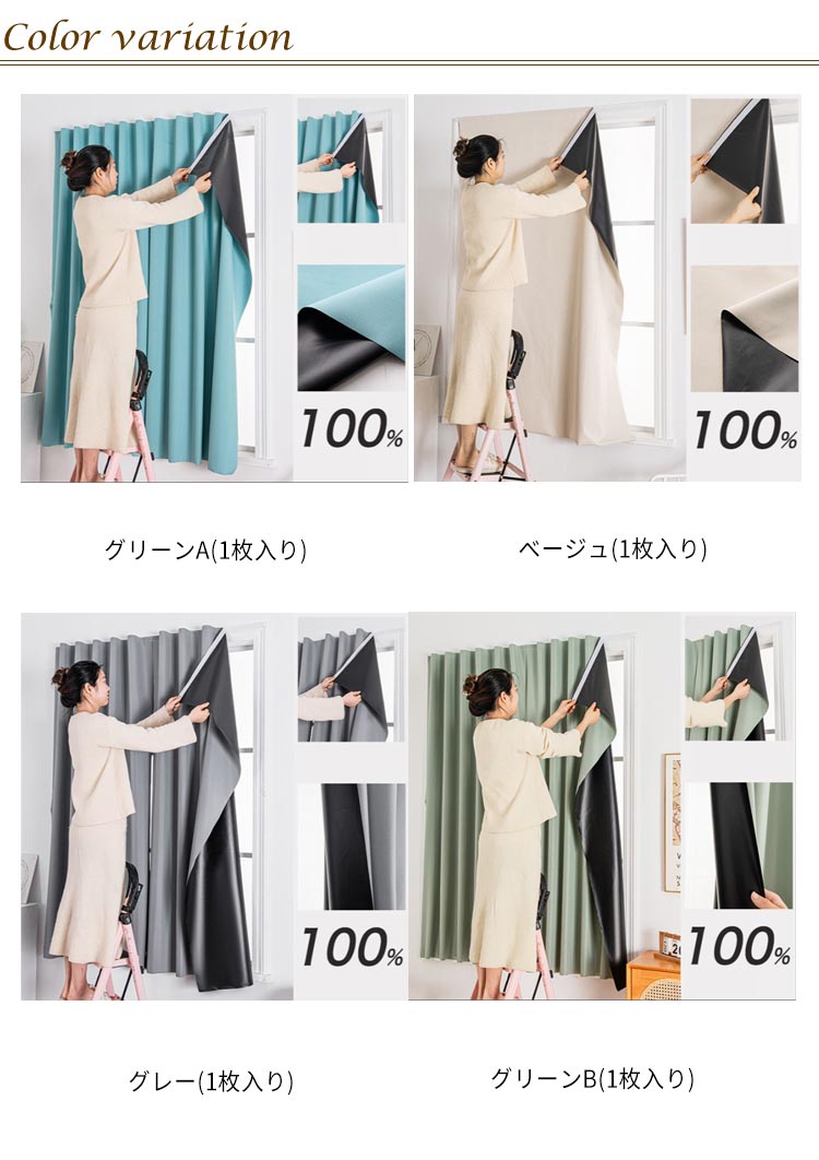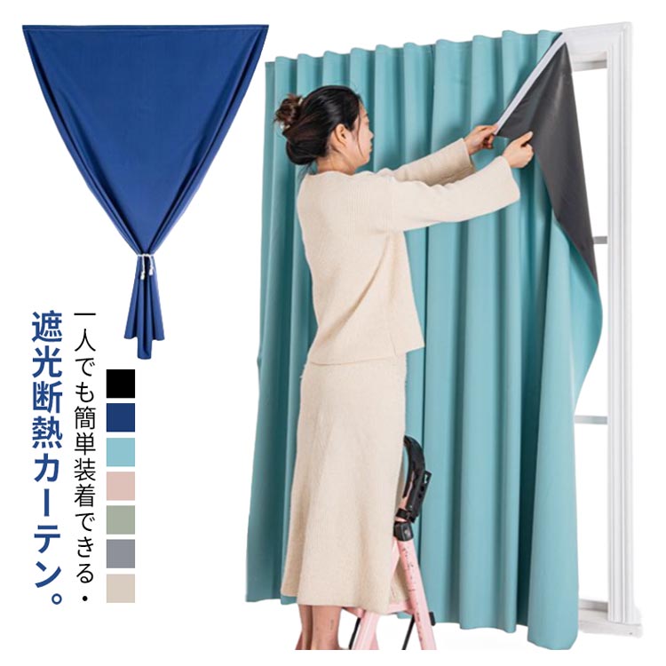 | カーテンレール不要?穴あけ不要! 一人でも簡単装着できる?遮光断熱カーテン。 マジック両面テープが付いて、窓枠や壁に貼り付けるだけでの簡単装着。 木製、金属、ガラス、セラミックタイルなど様々なところに簡単に貼り付けられるから、脱衣所、窓、靴箱、玄関に、お部屋のちょっとした間仕切りや目隠しにもピッタリ。 強い日差しを遮断し、日光や街灯の光をしっかり遮断します。熱の損失と取得が減少し、省エネにも繋がります。 室外陽光阻まれて、たとえ猛暑が続くても、薄暗く涼しい雰囲気を持っています。uvカット加工でフローリングや家具の日焼け防止もおすすめです。 見た目もオシャレ、インテリアに合わせやすい豊富な6カラー展開。 | |