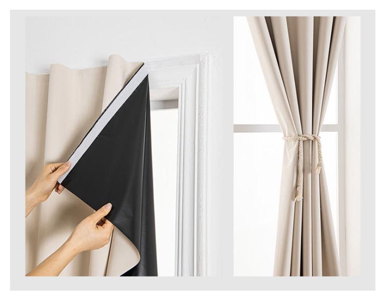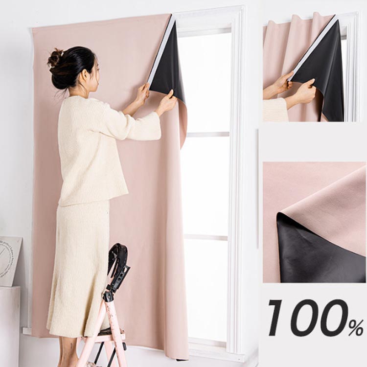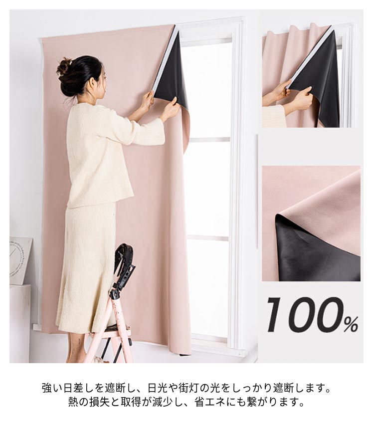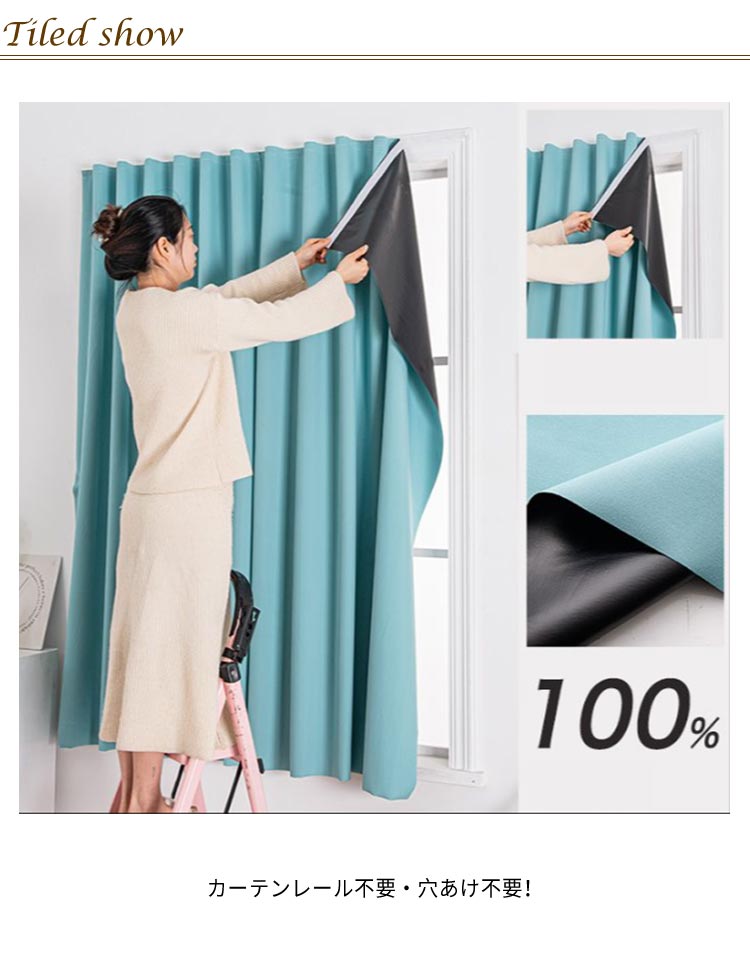 カーテンレール不要・穴あけ不要!一人でも簡単装着できる・遮光断熱カーテン。マジック両面テープが付いて、窓枠や壁に貼り付けるだけでの簡単装着。木製、金属、ガラス、セラミックタイルなど様々なところに簡単に貼り付けられるから、脱衣所、窓、靴箱、玄関に、お部屋のちょっとした間仕切りや目隠しにもピッタリ。強い日差しを遮断し、日光や街灯の光をしっかり遮断します。熱の損失と取得が減少し、省エネにも繋がります。室外陽光阻まれて、たとえ猛暑が続くても、薄暗く涼しい雰囲気を持っています。uvカット加工でフローリングや家具の日焼け防止もおすすめです。見た目もオシャレ、インテリアに合わせやすい豊富な6カラー展開。