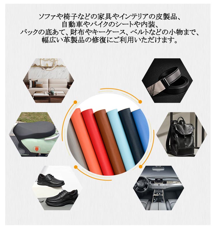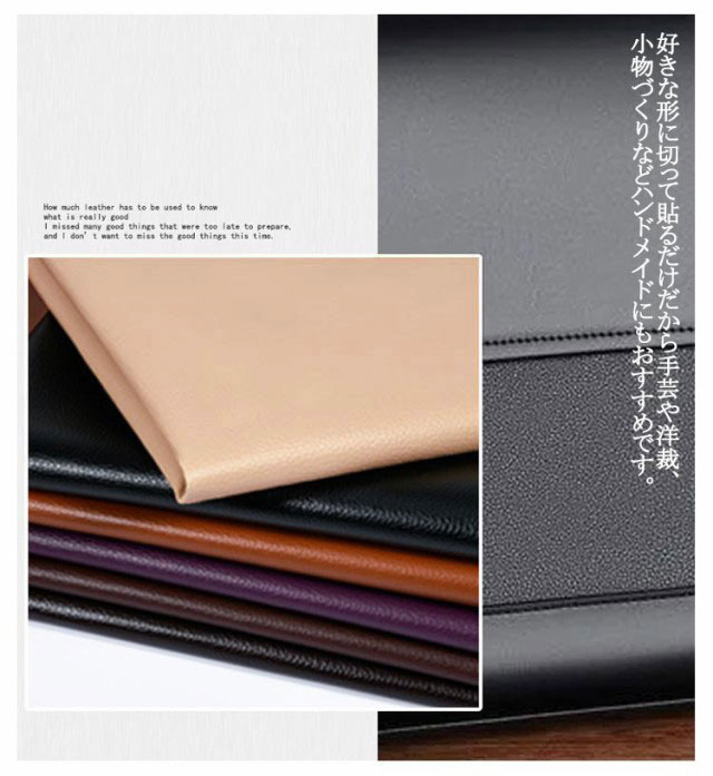 | 【20×30cm(5枚セット)】【強力粘着合皮補修シート】 光沢感を抑えた少しマットな質感です。 柔らかく微弾性があり、防水性と耐摩耗性に優れています。 ソファや椅子などの家具やインテリアの皮製品、自動車やバイクのシートや内装、 バックの底あて、財布やキーケース、ベルトなどの小物まで、幅広い革製品の修復にご利用いただけます。 好きな形に切って貼るだけだから手芸や洋裁、小物づくりなどハンドメイドにもおすすめです。 粘着シールでしっかり貼り付けできます。 PUレザーで高級感バッチリです。 手芸品や民芸品、工芸品などのDIYにもご利用いただけます。 | |