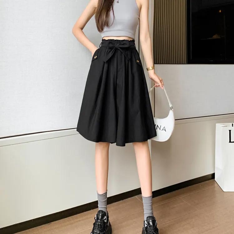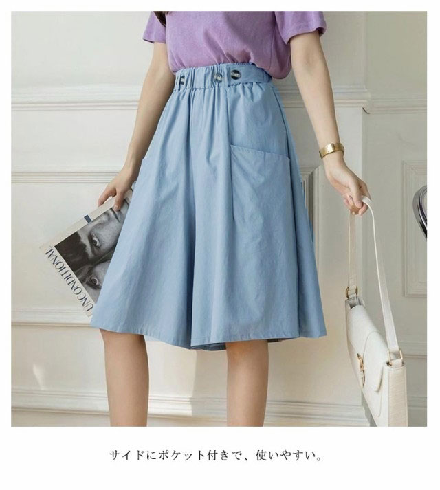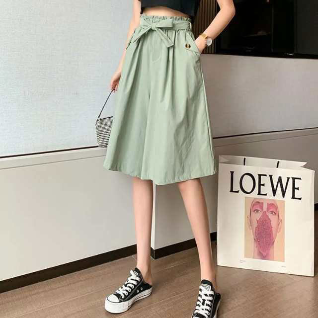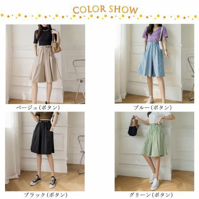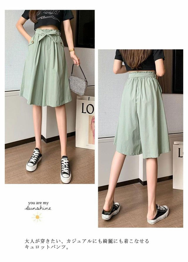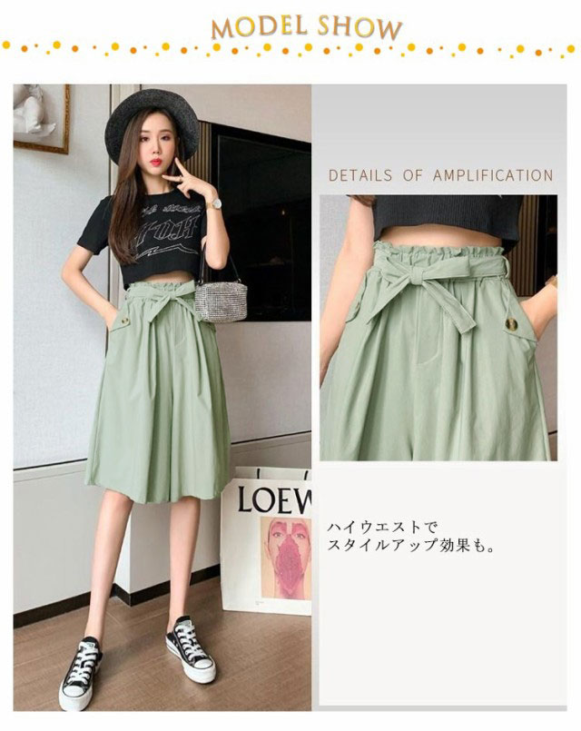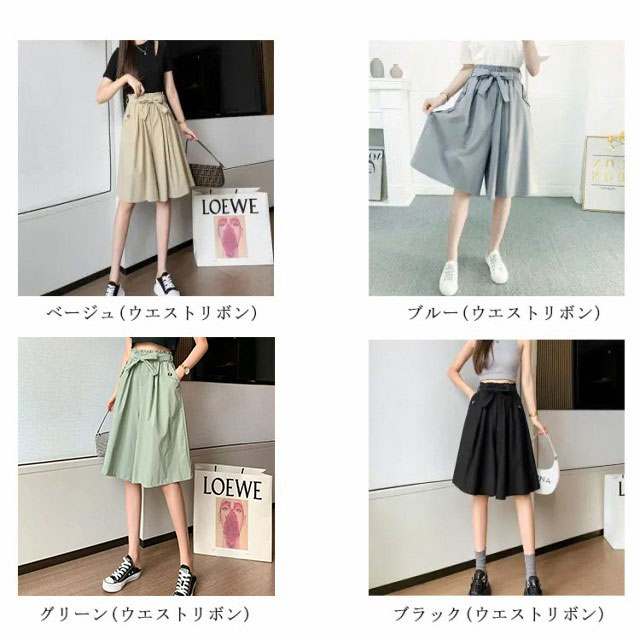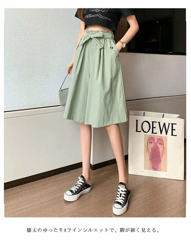キュロットパンツ レディース 2タイプ ゆったり Aライン ナチュラルカラー 薄手 膝丈 ハーフパンツ ショートパンツ ガウチョパンツ スカーチョ 春 夏 短パン ボトムス ハイウエスト カジュアル 大きいサイズ ウエストゴム ウエストリボン 涼しい