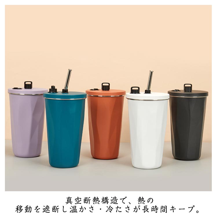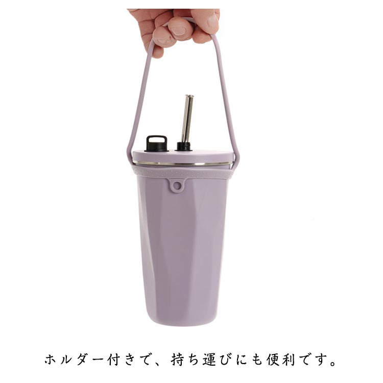 タンブラー ストロー付きタンブラー ホルダー付き ストロー こぼれない 蓋付き おしゃれ 水筒 トラベルタンブラー マグカップ コーヒーカップ ステンレス 軽量 真空 二重構造 断熱 保温 保冷 600ml 大容量 かわいい オシャレ アウトドア 遠足 車 キャンプ