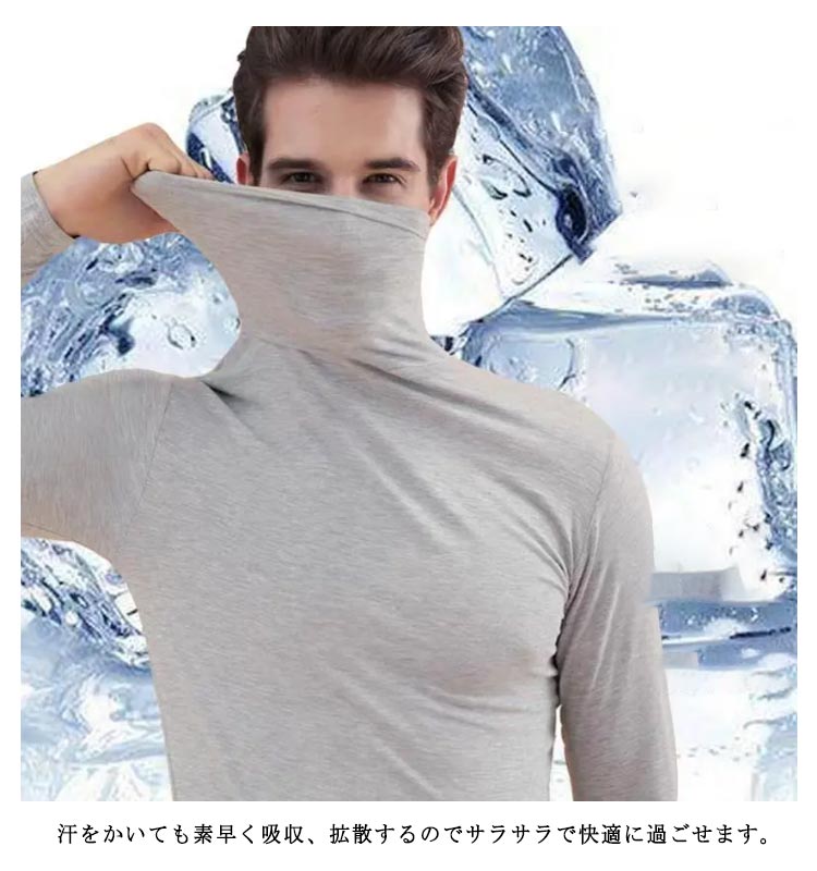 ゴルフ インナーシャツ メンズ 接触冷感 ゴルフウェア インナー 長袖 ハイネック 冷感 薄手 夏 スポーツシャツ アンダーウェア UVカット 通気 吸汗 速乾 日焼け対策 ストレッチ ひんやり 涼感 スポーツウェア 父の日 プレゼント 送料無料