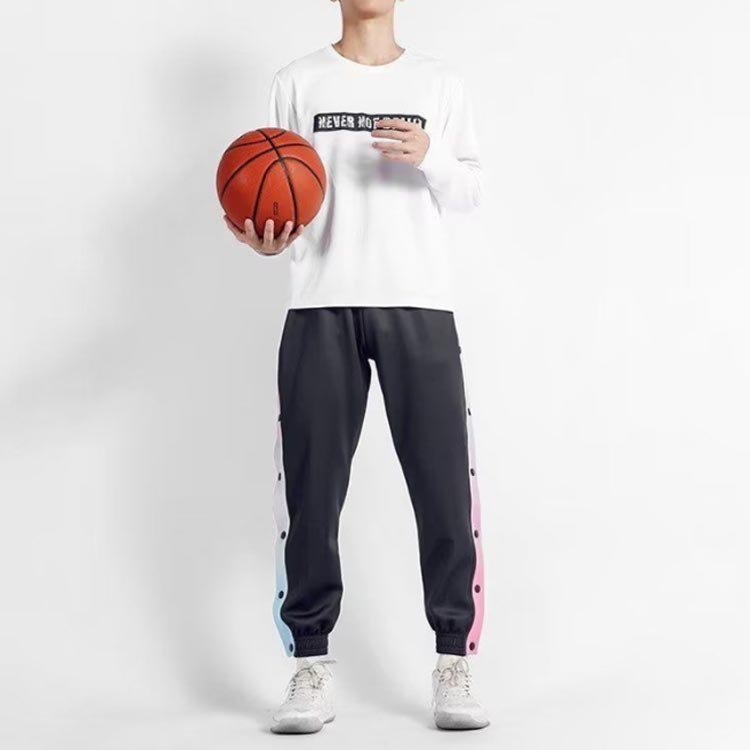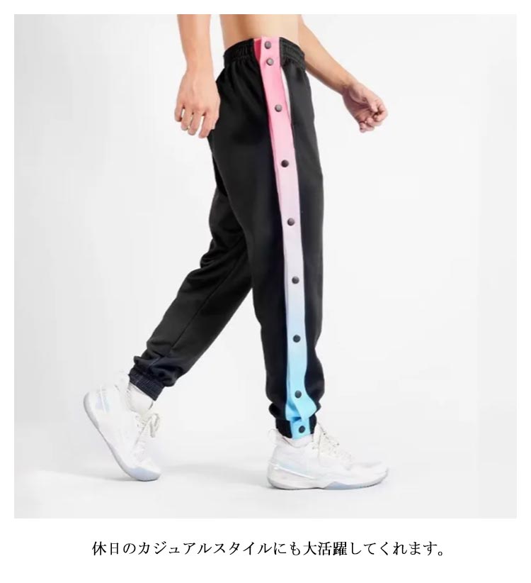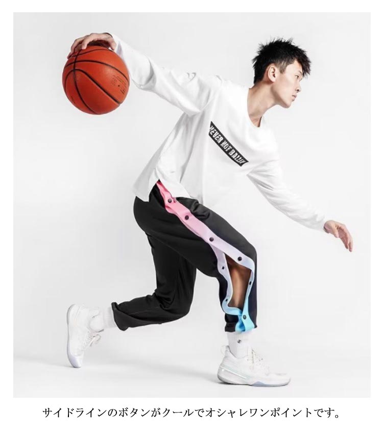 バスケットボールパンツ キッズ ジュニア 大人 バスケットパンツ スナップボタン 裾ボタン サイドボタン サイドライン 春夏秋冬 防寒 長ズボン ロングパンツ ジャージ 下 男の子 女の子 男性 女性 メンズ レディース バスパン バスケパンツ