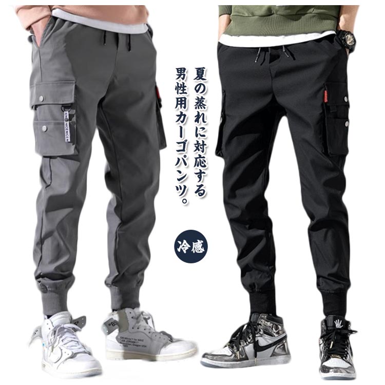 カーゴパンツ メンズ 夏 薄手 接触冷感 ひんやり 涼しい 冷感パンツ ロングパンツ 6ポケット ジョガーパンツ イージーパンツ カジュアルパンツ スリム 作業着 美脚 ウエストゴム カジュアル 無地 おしゃれ 大きいサイズ 送料無料 S-5XL