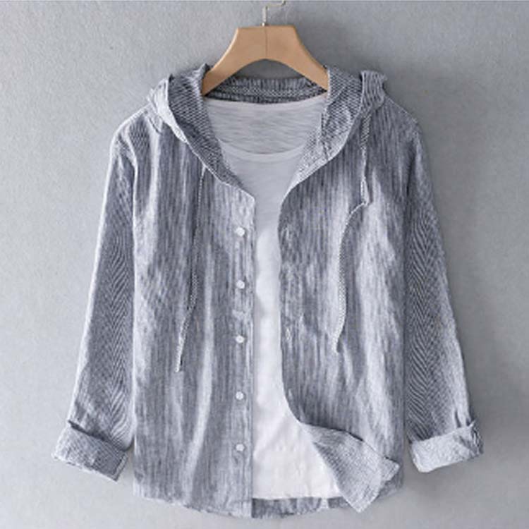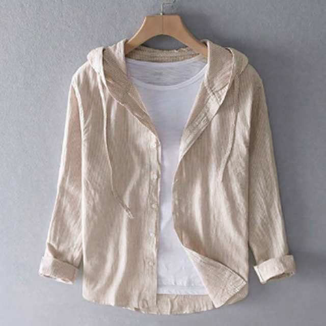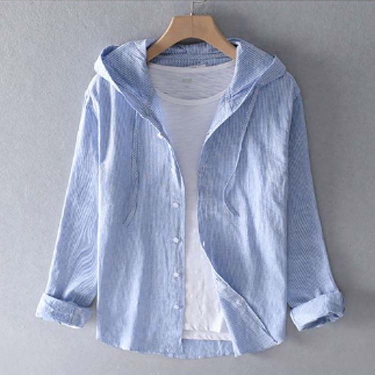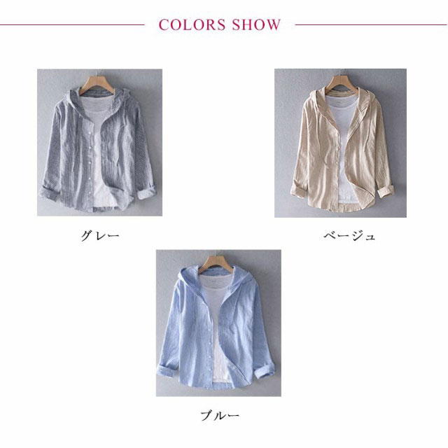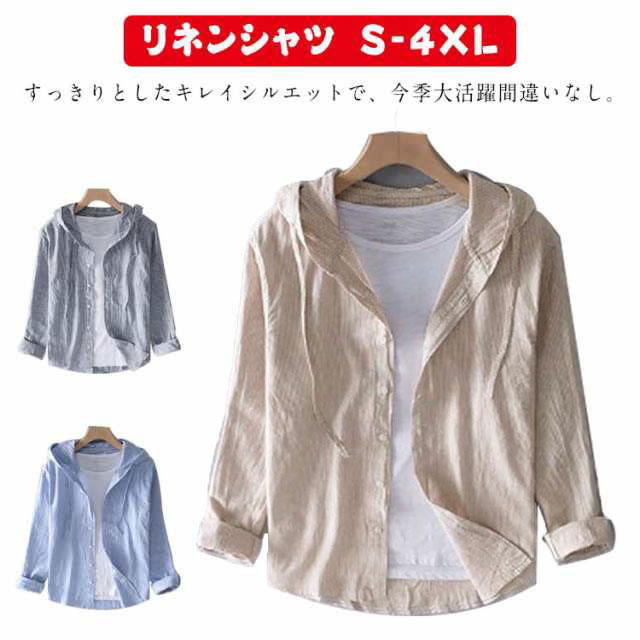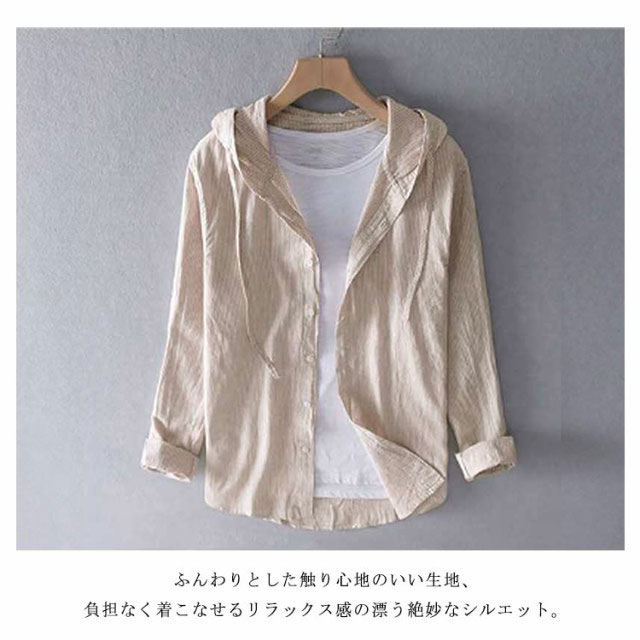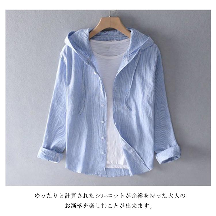 フード付きパーカー 夏用 リネンシャツ リネンTシャツ 長袖パーカー パーカー メンズ 前開き 薄手 夏 春夏 麻 綿麻 シンプル 薄手 涼しい 無地 カジュアル 青 送料無料