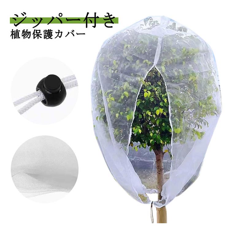 | メッシュ式に作成されており、通気性や耐久性に優れています。耐熱、耐寒、低熱吸収性があって、低直射日光強度という優れた特性を備えて、繰り返し使うことができてます。 PE素材で作らて、環境に優しい、通気性に優れた、耐久性があります、繰り返し使うことができます。長期間使用しても損傷しない。 果樹栽培には必須!鳥、ウサギ、その他の虫による噛み付きから植物を保護します。恐ろしい天気から大切な花木を守ります。 透気生地は植物が窒息しているか、あるいは光合成を妨げることはありません。 花、野菜、観葉植物や鉢植えなどの植物に覆い。 ファスナー付きタイプなので、樹木に被せてファスナーを締めるだけの簡単取付け。 広い開口部により、花や木に直接覆って、プラントの高さや大きさに合わせて自由に保護カバーを調整することができます。 | |