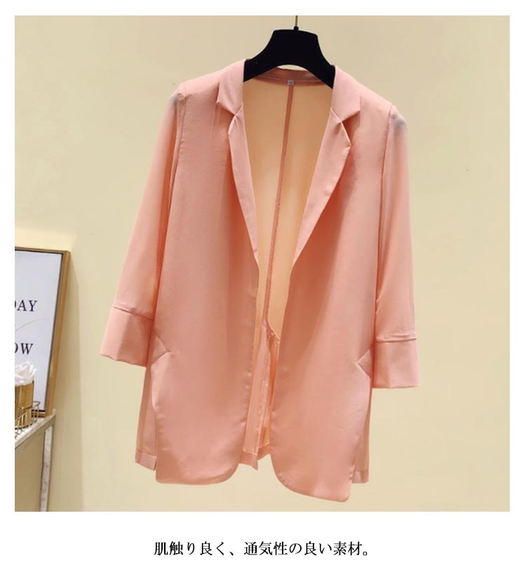 サマージャケット レディース 薄手 黒 夏 薄手 通勤 サマージャケット レディース 羽織 スーツ レディースジャケット スリット 接触冷感 7分袖 カジュアルジャケット ジャケット 上着 ジャケット オフィス オフィスジャケット 白 テーラードジャケット
