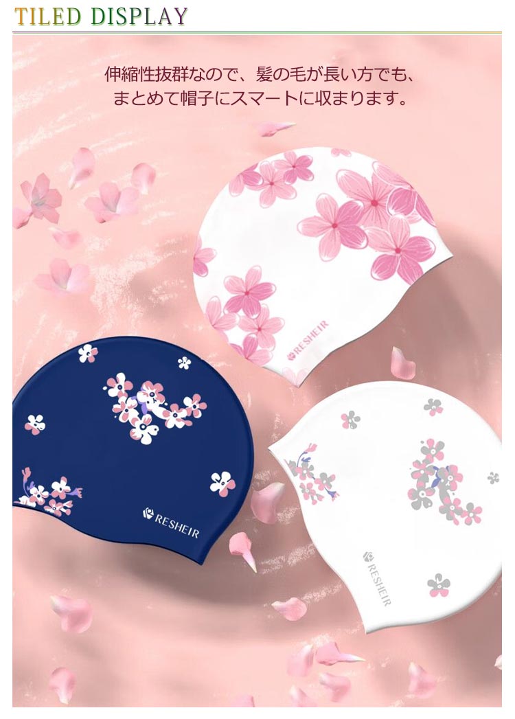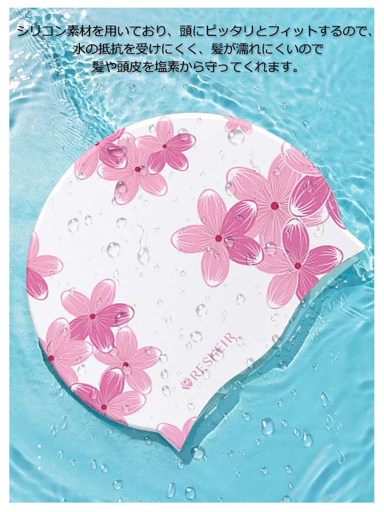 スイムキャップ 大人 水泳 レディース シリコン サクラ 水泳帽 ロングヘア 花柄 上品 おしゃれ 水着用 スイムアクセサリー フィットネス水着 キャップ 水泳用帽子 プール ウォータースポーツ ゆったり シンプル プレゼント ギフト