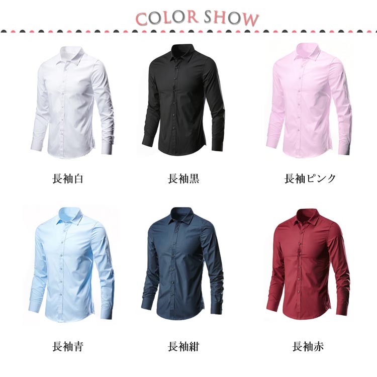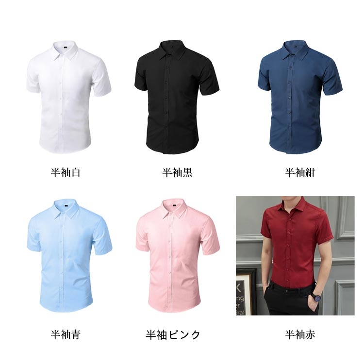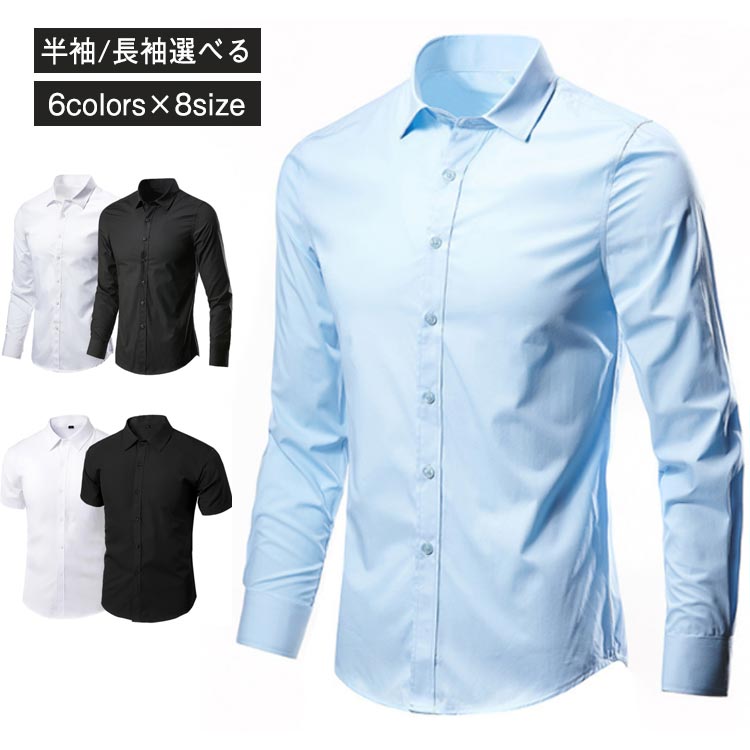 ワイシャツ 半袖 カラーシャツ 長袖 メンズ 黒 ノーアイロン 紺 黒 白 シャツ スリム Yシャツ ドレスシャツ カッターシャツ ビジネスシャツ 大きいサイズ 黒シャツ カジュアル パーティー 結婚式 二次会 ノンアイロン 形態安定 父の日 送料無料