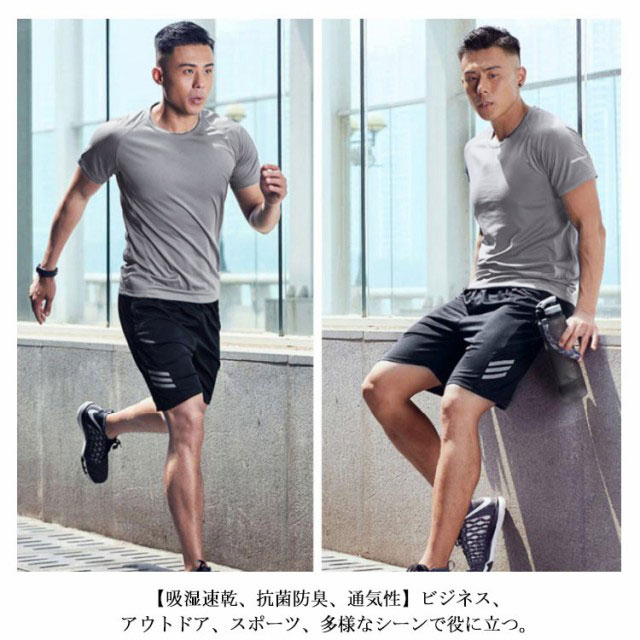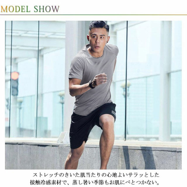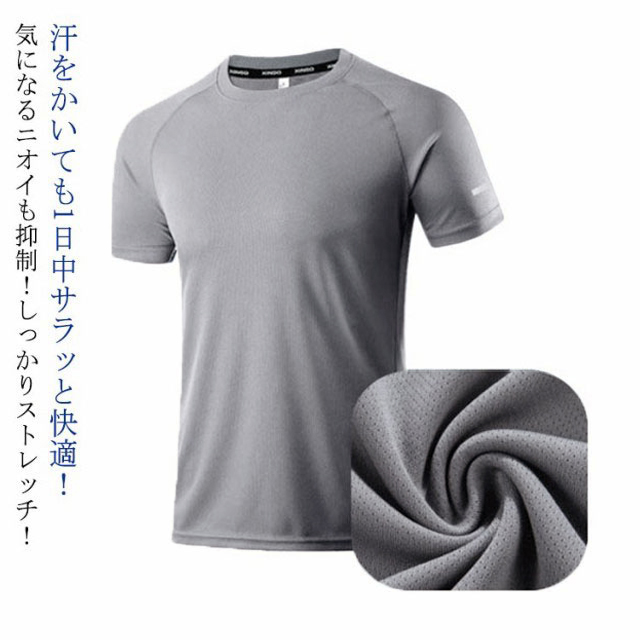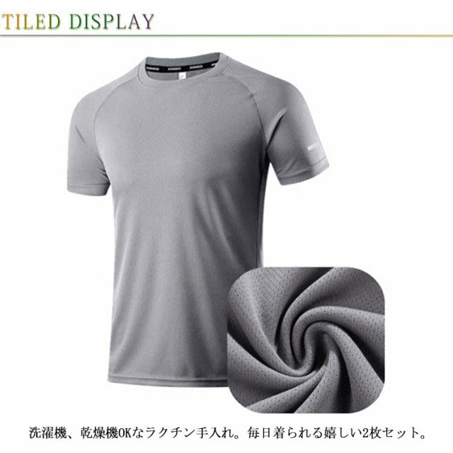 2枚セット!クールコア 半袖 Tシャツ 接触冷感 夏用 涼しい トップス クルーネック 吸汗速乾 UVカット メンズ メッシュ スポーツ 作業服 作業着 ランニング 送料無料