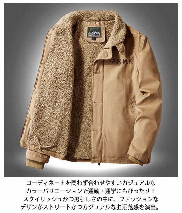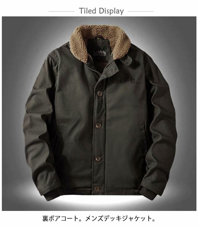 M-5XL!寒い日の普段着の防寒アウターとして大活躍します。裏ボアコート。メンズデッキジャケット。保温性の高いボアライニングが、ソフトな肌触りで着心地抜群。裾内側のドローコードで絞り具合の調節が可能です。毛足の長い裏ボア仕様で冬もしっかり暖かい。フロントはボタンとジッパーで開閉。スソはヒモで絞ることができます。袖口は内側がリブ仕様になっています。内側の脇部分はコットン素材になっています。コーディネートを問わず合わせやすいカジュアルな カラーバリエーションで通勤・通学にもぴったり!スタイリッシュかつ男らしさの中に、ファッションなデザンがストリートかつカジュアルなお洒落感を演出。