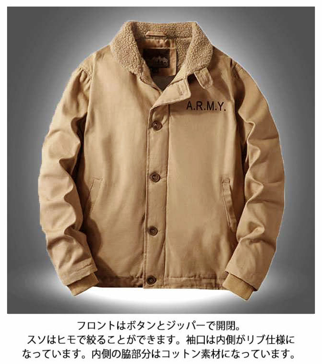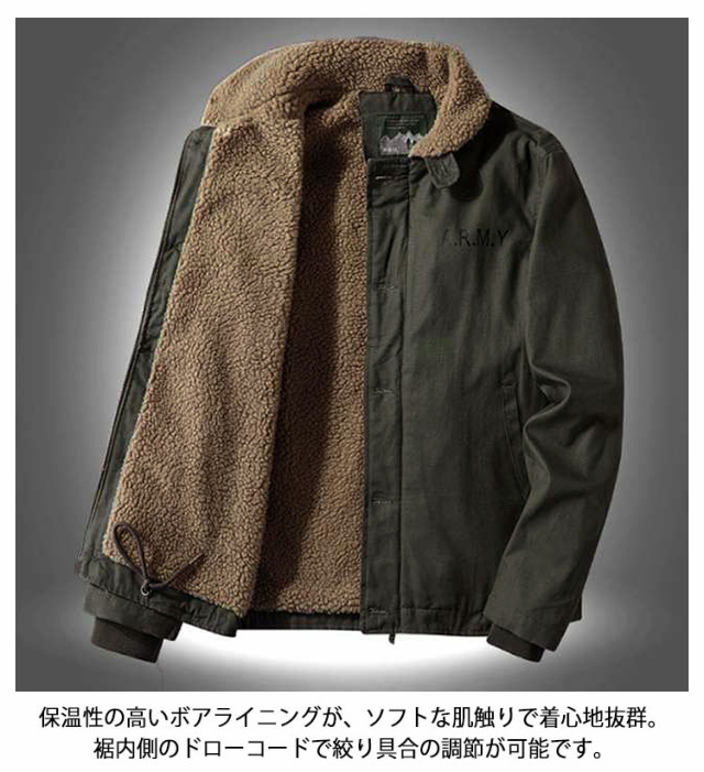 ミリタリージャケット メンズ N-1 裏起毛 ボアジャケット ブルゾン ジャケット 裏ボア ジャンパー デッキジャケット 冬服 冬物 あったか アウトドア デッキジャケット N1 防寒 厚手 保温 ミリタリーコート フライトジャケット 大きいサイズ おしゃれ カジュアル 送料無料
