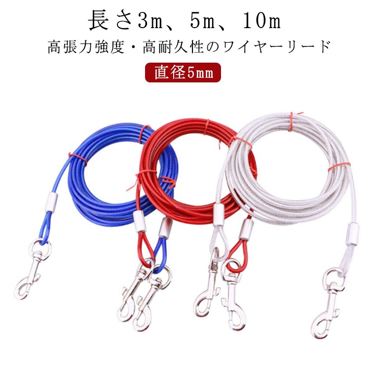 ワイヤーリード スチールワイヤーロープ ステンレス ワイヤーリード 犬用リード 切れないリード 大型犬 中型犬 ステンレス チューブ リード 切れないリード 犬の散歩 ワイヤー入り 錆びにくく ワイヤーリード ドッグリード ロングリード 10M 5M 3M 犬用品