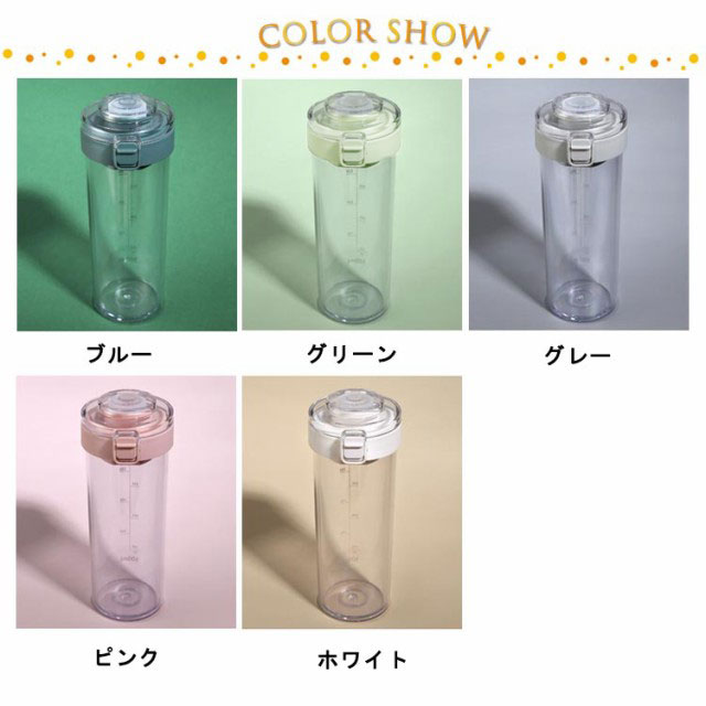 | お茶やお湯の沸かしたてをそのまま注ぐことができ、便利に使えるウォーターボトル。 片手で簡単に開くワンタッチ式のふた、傾斜のある飲みやすい飲み口もワンポイント。 安全、非毒性、耐久性この飛散防止、軽量、再利用可能なウォーターボトルは、100%BPAフリーのプラスチックで作られています。有害な化学物質、プラスチックの味、悪臭のない水をリラックスして楽しむことができます! シンプルなフォルムで透明なスタイリッシュなデザインでおしゃれに持ち運べます。 食品グレードPP素材の茶こし付き、茶葉やコーヒー、果物、アイスなどを入れて、楽しく飲むことができます。 茶こしやフタなど各パーツは分解して洗えるからいつも清潔にご利用いただけます。 | |