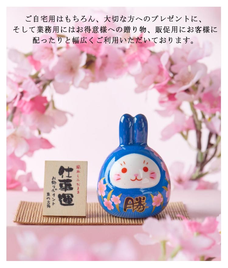 | 新年に干支の置物を飾ると福を招くといわれており、かわいい福うさぎです。 ご自宅用はもちろん、大切な方へのプレゼントに、そして業務用にはお得意様への贈り物、販促用にお客様に配ったりと幅広くご利用いただいております。 町内会や敬老会、子供会などでも大変好評をいただいており喜ばれております。 | |
