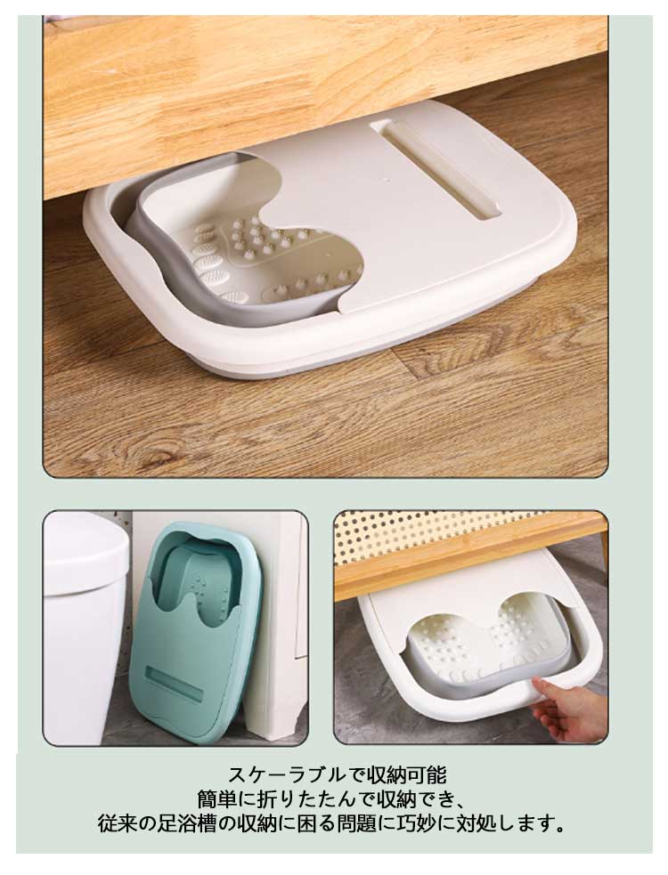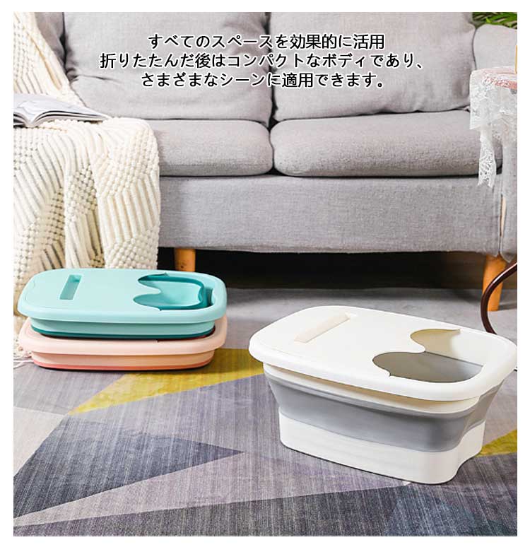 足湯バケツ 折りたたみ 15L大容量スケーラブルで収納可能簡単に折りたたんで収納でき、従来の足浴槽の収納に困る問題に巧妙に対処します。すベてのスペースを効果的に活用折りたたんだ後はコンパクトなボディであり、さまざまなシーンに適用できます。底部のマッサージ粒子は足裏の疲労を緩和し、足のツボをマッサージ深いバケツ型の足浴で、足首までカバースマホスタンド足を浸しながらテレビ番組が見られる。