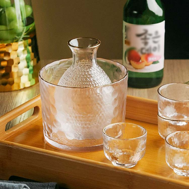 【6点セット】酒器セット 冷酒器 ガラス製 徳利 杯 おちょこ 冷酒グラス 日本酒 熱燗 冷酒 とっくり ぐい呑み おしゃれ シンプル 保温 保冷 盃 上品 高級感 ゴールド 金 プレゼント 贈り物 ギフト 引っ越し お祝い 来客 父の日 母の日 結婚祝い 敬老の日
