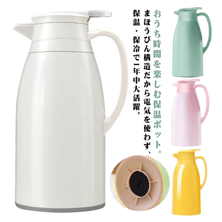 保温ポット 魔法瓶 ポット リビングポット 1L/1.3L/1.9L 大容量 保温 保冷 ガラス製 まほうびん 真空断熱 ガラスまほうびん テーブルポット 保冷ポット 卓上用 コーヒーポット ピッチャー かわいい シンプル 水筒 おしゃれ 北欧 引越し 祝い ギフト 新生活 プレゼント