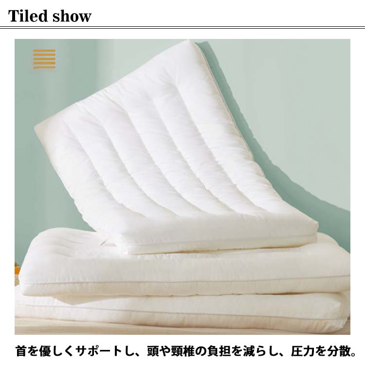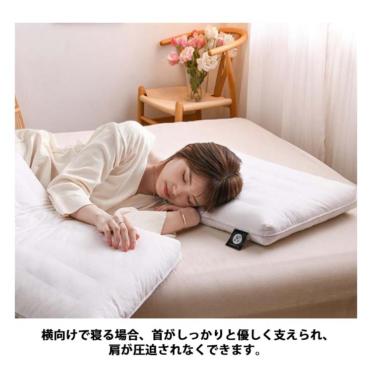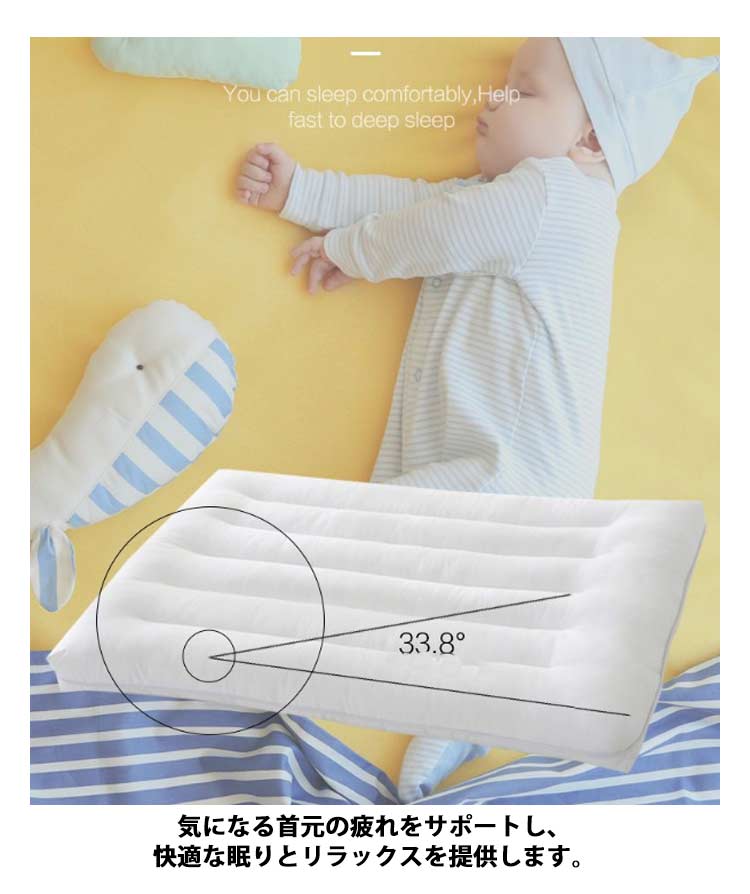 【低い枕】【子供用 / 大人用】【安眠・快適】首を優しくサポートし、頭や頸椎の負担を減らし、圧力を分散。気になる首元の疲れをサポートし、快適な眠りとリラックスを提供します。通気性抜群のポリエステルを使用されておりますので、汗をかきやすい方も快適。仰向けで寝る場合、首を自然な形にキープして、ぐっすり軽快に眠れます。横向けで寝る場合、首がしっかりと優しく支えられ、肩が圧迫されなくできます。