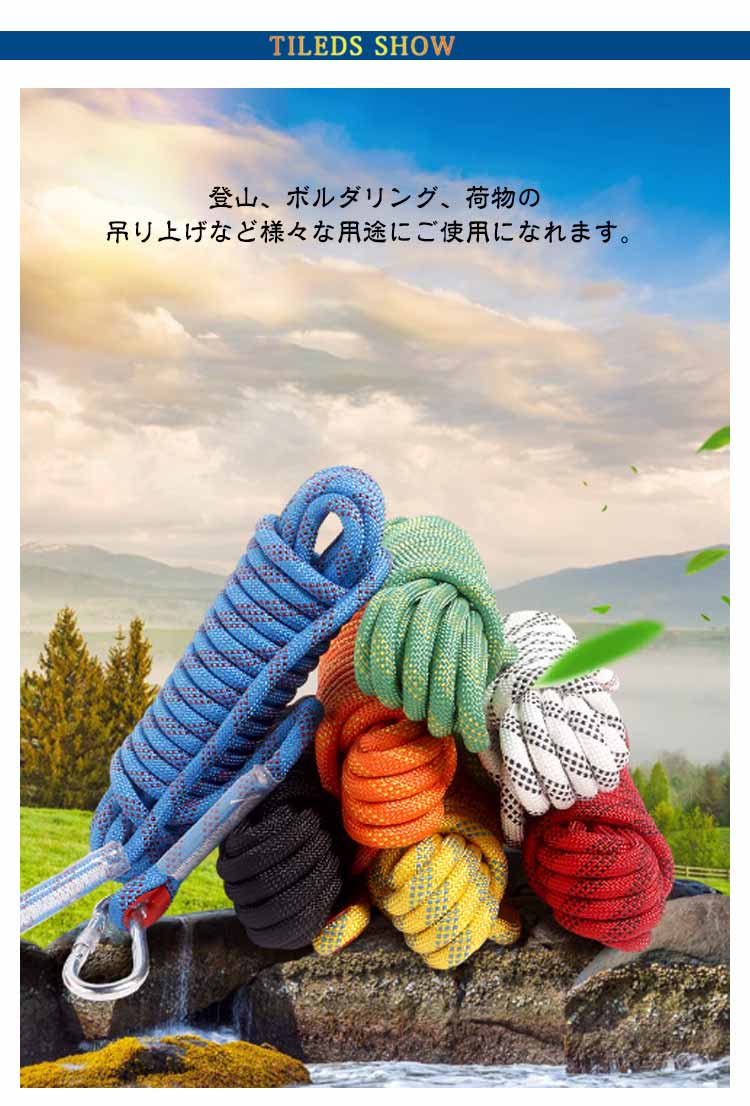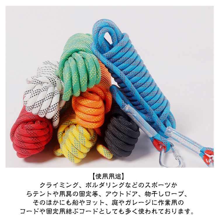 ロープ 10m 15m 20m アウトドア 登山 クライミング 8mm 10mm クライミングロープ 多目的ロープ ザイル カラビナ付き 消防 多機能ロープ キャンプ 救助ロープ 補助ロープ 耐久性 防災グッズ ボルダリング 非常用ロープ 送料無料