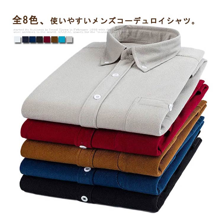 | 全8色、使いやすいメンズコーデュロイシャツ。 コーデュロイ生地は見た目だけでなく着用しても暖かく肌寒い日にとても重宝します。 涼しい春や秋にはアウターとして、肌寒い冬にはジャケットやコートのインナーとして使えるので幅広い着こなしを楽しめます。 デニムパンツ、白のインナーをチョイスすると清潔感のあるスッキリした感じにまとまります。 | |