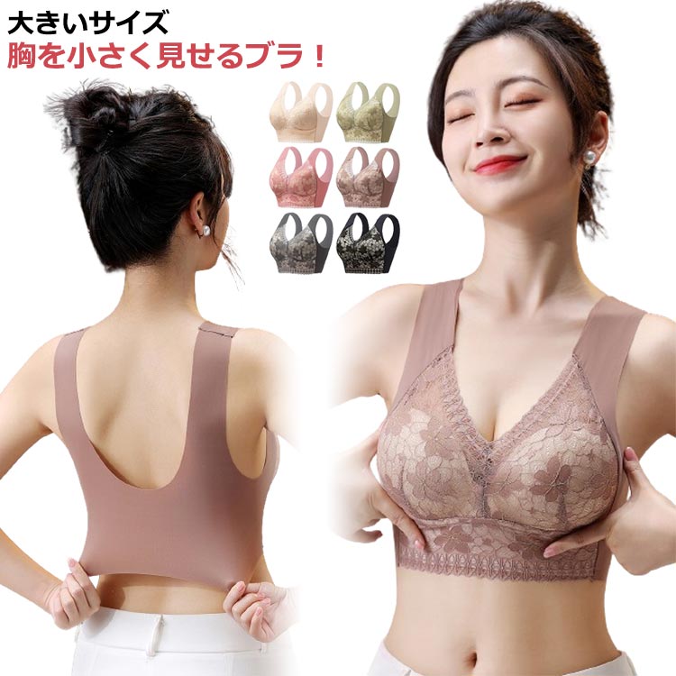 コンパクトブラ 胸を小さく見せるブラ ブラジャー 小さく見せるブラ bra アンダーウェア ブラジャー 大きいサイズ ノンワイヤー インナー シームレス レディース 着痩せブラ 小さく見せる ブラ 補正 下着 レース 痩せ見え