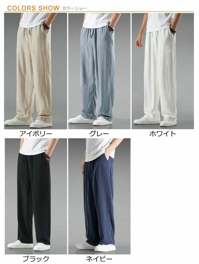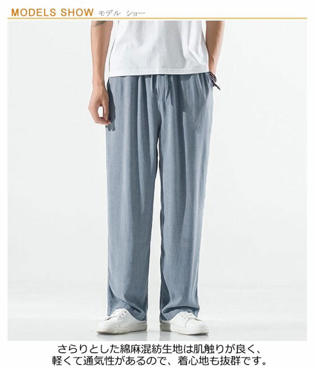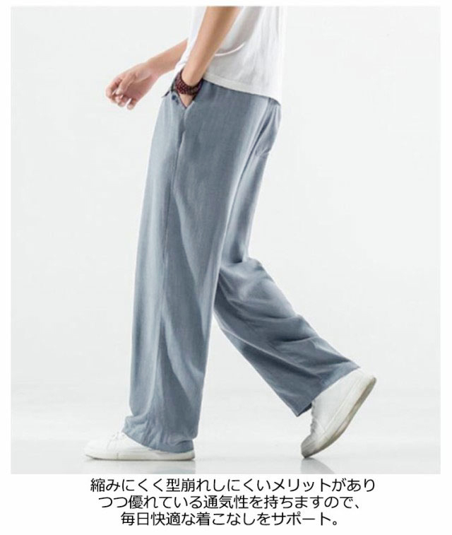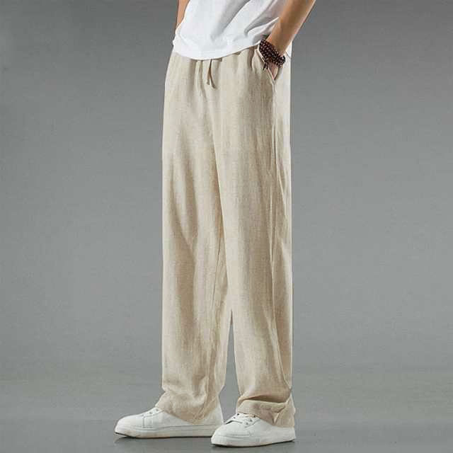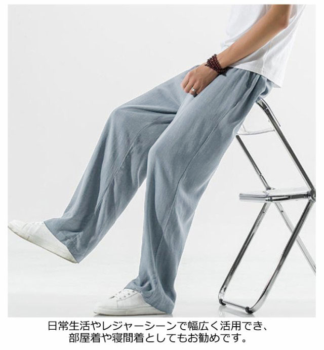 リネン パンツ メンズ ワイドパンツ 綿麻 春夏 ゆったり 涼しい イージーパンツ リネンパンツ ロングパンツ 薄手 ズボン ウエストゴム リラックス ボトムス サルエルパンツ おしゃれ 夏 イージーパンツ 涼しい 原宿系 アロハ 無地 全5色 ナチュラル 送料無料