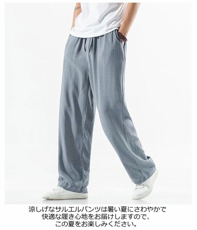 M-5XL!清潔感のあるスタイルを打ち出すのにピッタリしたパンツさらりとした綿麻混紡生地は肌触りが良く、軽くて通気性があるので、着心地も抜群です。涼しげなサルエルパンツは暑い夏にさわやかで快適な履き心地をお届けしますので、この夏をお楽しみください。日常生活やレジャーシーンで幅広く活用でき、部屋着や寝間着としてもお勧めです縮みにくく型崩れしにくいメリットがありつつ優れている通気性を持ちますので、毎日快適な着こなしをサポート