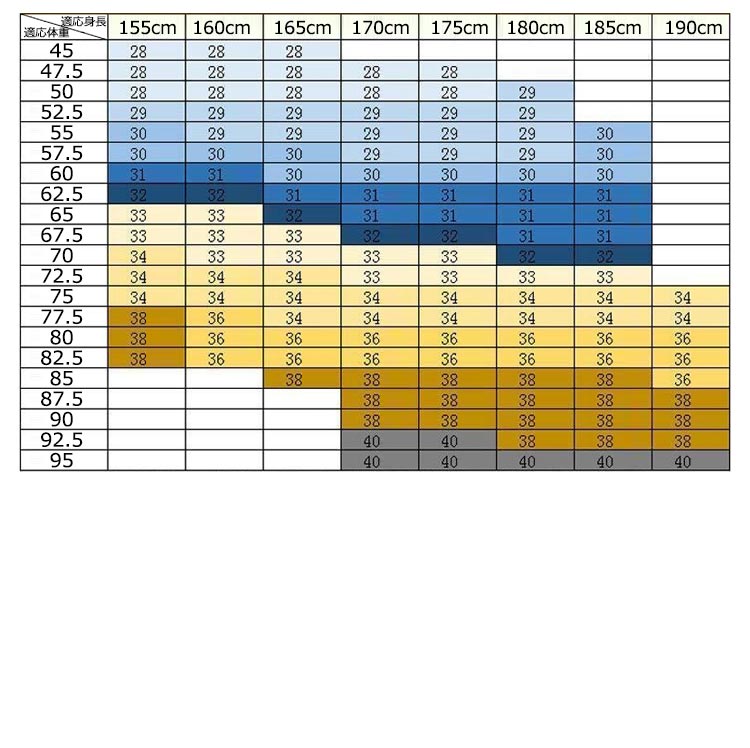 | サイズ | 28 29 30 31 32 33 34 36 38 40 |