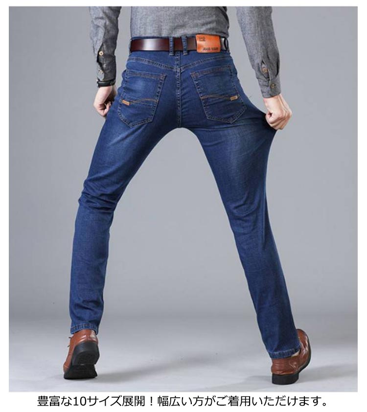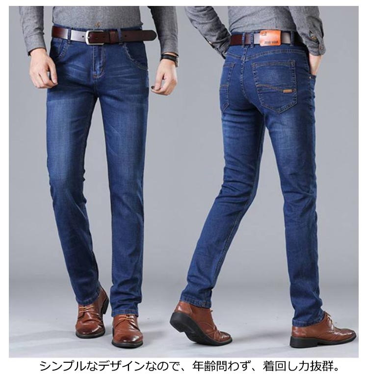 | ジーンズ メンズ デニムパンツ 大きいサイズ 春夏秋 伸縮性に優れた快適な履き心地のストレッチ素材なのでテレワークなどの在宅勤務にも適したボトムスです。 カジュアルからビズカジ、ゴルフウエアとしてまで幅広くコーデに取り入れられる細身シルエットのあったかパンツ! 豊富な10サイズ展開!幅広い方がご着用いただけます。 シンプルなデザインなので、年齢問わず、着回し力抜群。 | |