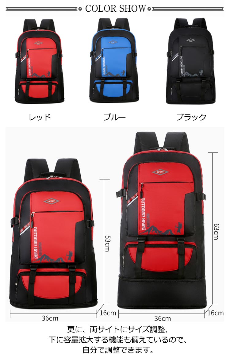 ザック 60l 防水 メンズ レディース 容量を拡大する 容量拡大可能 登山 バッグ 防災リュック 防水 女性 男性 60L バックパック リュックサック 登山バック 大容量 リュック 登山 旅行 防災 遠足 軽量 撥水 アウトドア 男女兼用 レディース メンズ ザック