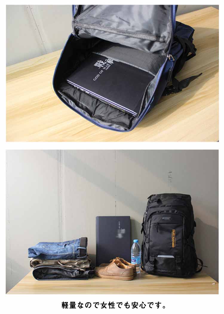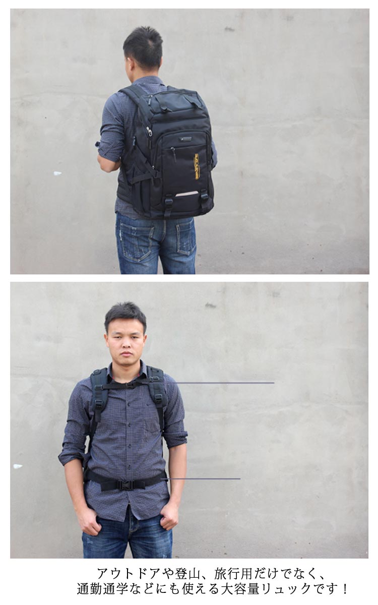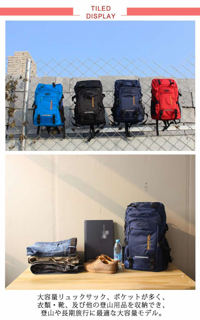 | 撥水加工!50L大容量アウトドアリュックサック。 大容量リュックサック、ポケットが多く、衣類?靴、及び他の登山用品を収納でき、登山や長期旅行に最適な大容量モデル。 メッシュには滑り止め効果のある素材を使用しており、背負う過程で肩に発生する空滑り現象を防止します。 背面の快適さを保証することを前提として、最大限の透湿性と摩擦耐性効果を保証します。 アウトドアや登山、旅行用だけでなく、通勤通学などにも使える大容量リュックです! 軽量なので女性でも安心です。 | |