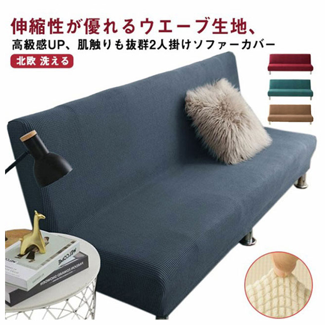 ソファーカバー 2人掛け 肘なし ウエーブ生地 フィット ズレない ストレッチ 伸縮 ウォッシャブル 北欧 おしゃれ 2人用 肘無し 肘掛け無し フィットカバー ソファカバー イスカバー