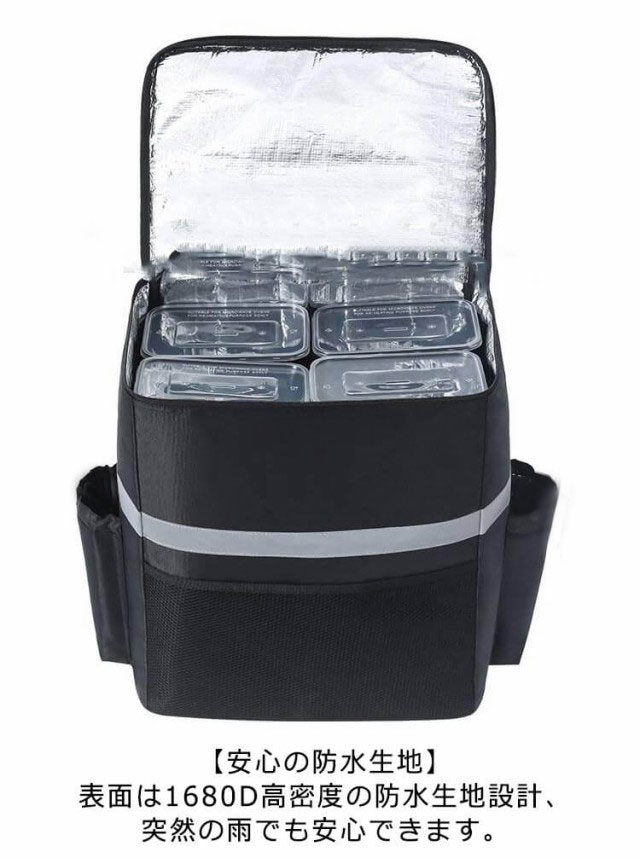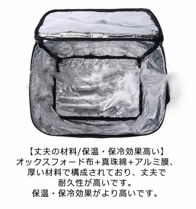 【防水】【50L】【保温保冷】【拡張可】用途:保温・保冷 、配達に最適なデリバリーバッグ【安心の防水生地】表面は1680D高密度の防水生地設計、突然の雨でも安心できます。デリバリーバックだけでな普段の買い物からピクニック、釣り、キャンプ等日常の様々なシーンで活躍できます。【丈夫の材料/保温・保冷効果高い】オックスフォード布+真珠綿+アルミ膜、厚い材料で構成されており、丈夫で耐久性が高いです。保温・保冷効果がより高いです。【2枚の仕切り板/ピザも入れる大容量】2枚の仕切り板付き、冷たい飲み物と温かい食べ物を隔てることができ、合理的に空間を区分できます。下の方は容量を拡充できる袋を設計して、50Lの大容量に達します。