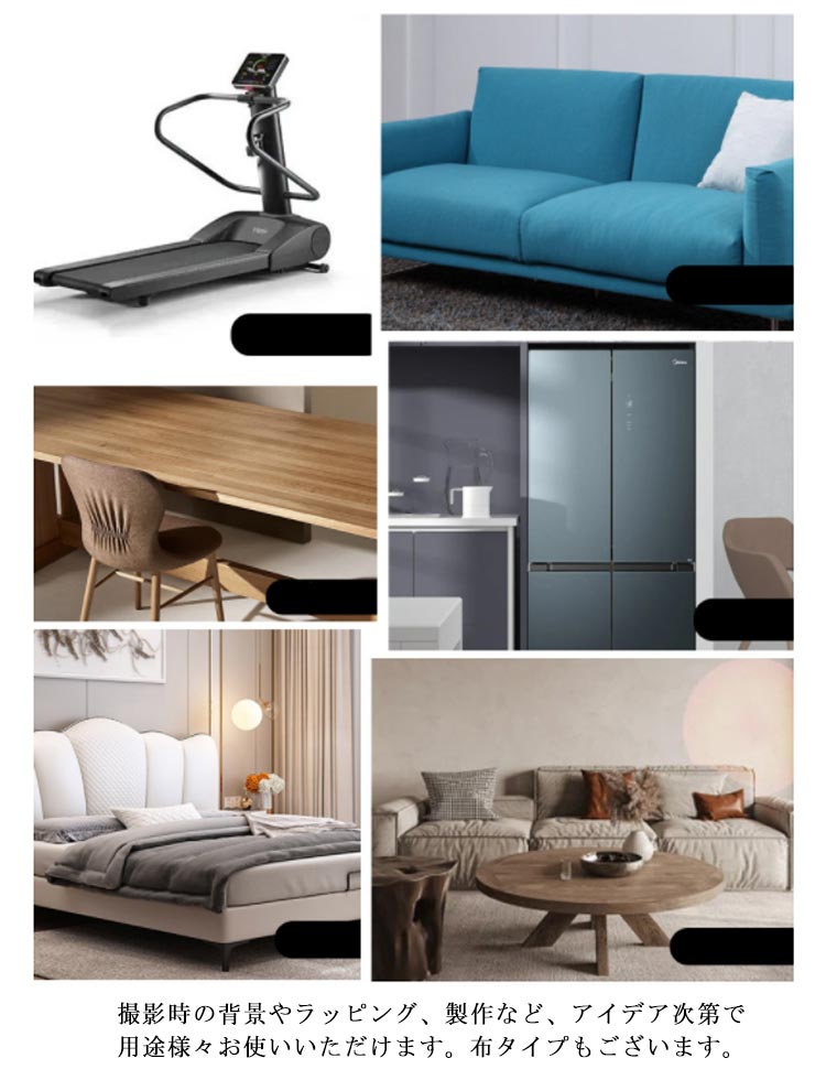 | 家具カバー。家具などのホコリ除け、納品時等にお使いいただける大判カバーです。 大きいサイズですのでペッドやソファなどもに掛けられます。 撮影時の背景やラッピング、製作など、アイデア次第で用途様々お使いいただけます。布タイプもございます。 | |