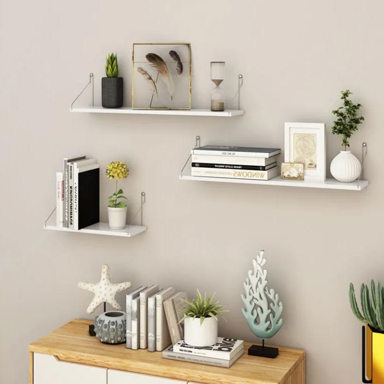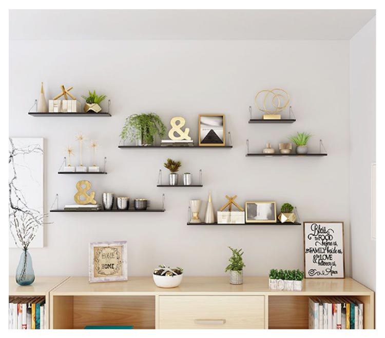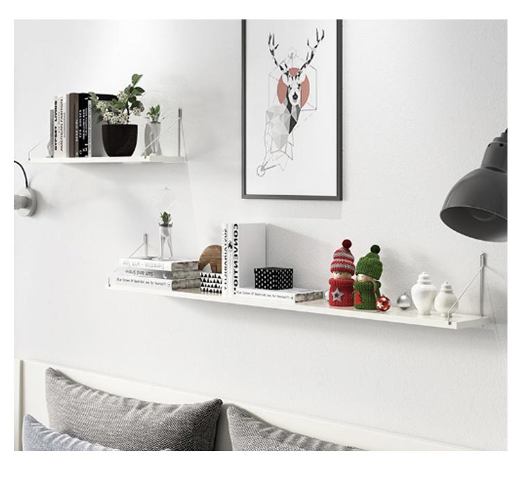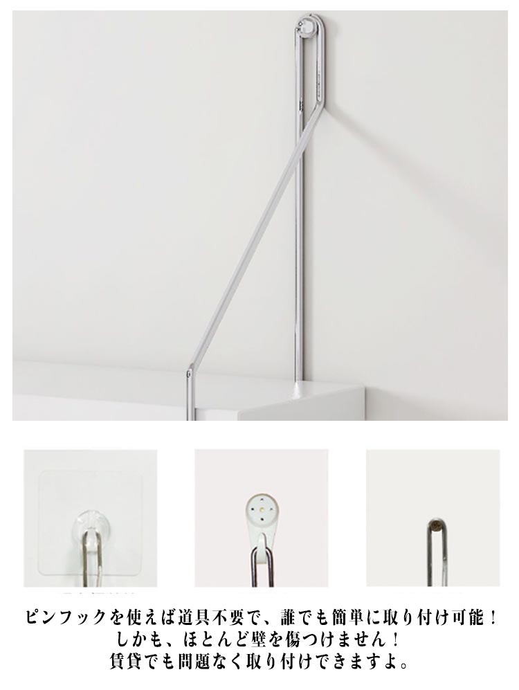 シンプルなデザインで、どんなお部屋にもマッチするウォールシェルフ。細めのフレームがディスプレイしたアイテムの魅力をより一層引き立てます。ピンフックを使えば道具不要で、誰でも簡単に取り付け可能!しかも、ほとんど壁を傷つけません! 賃貸でも問題なく取り付けできますよ。フォトフレーム、本や鉢植えなど小物置きとした実用的な使い方も魅力的。美しい棚板とファション感溢れるステンレスの組み合わせ。家のリビング、玄関、洋室、和室はもちろん、カフェやバーなどあらゆるところで大活躍。