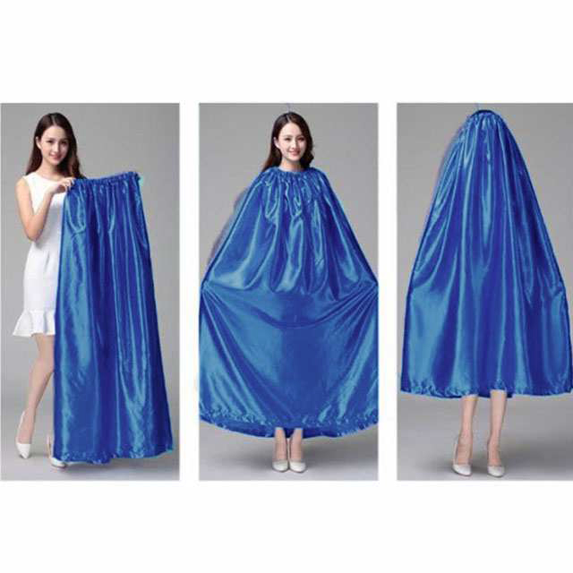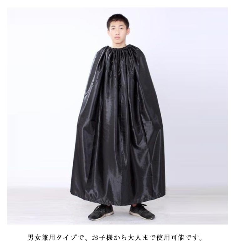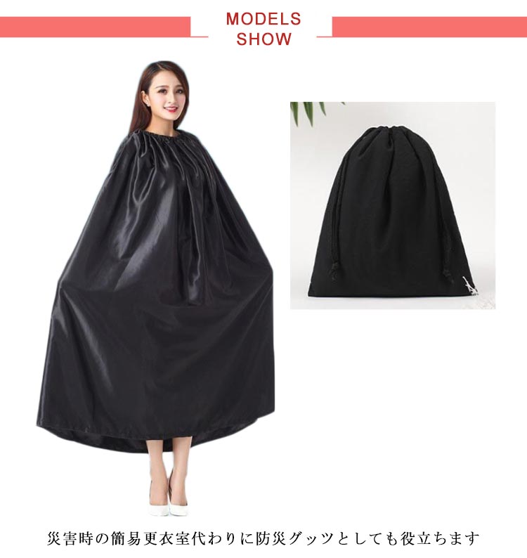 | 収納ポケットが付いたお酒落なお着替え用ケープです! 災害時の簡易更衣室代わりに防災グッツとしても役立ちます。 首元がゴム仕様になっているのと生地面積も広いのですぐに着替えやすい。 男女兼用タイプで、お子様から大人まで使用可能です。 社交ダンス競技会場の限られたスペースで、さっとお着替えができます。 | |