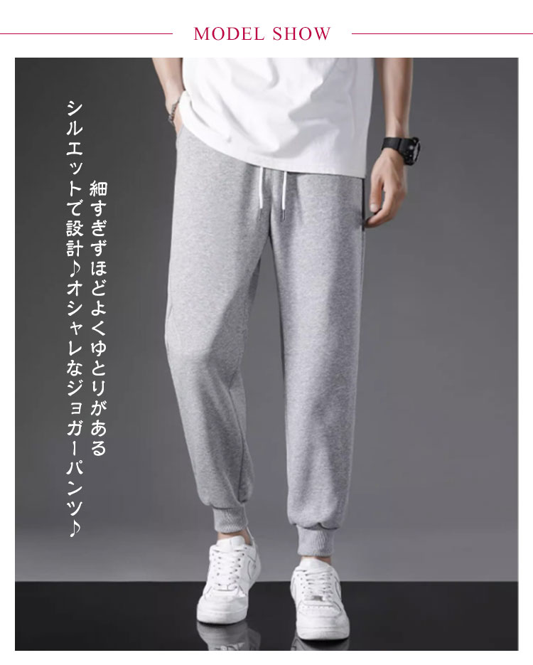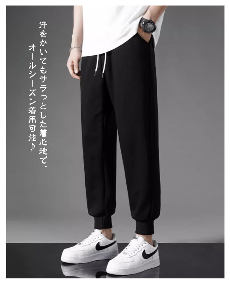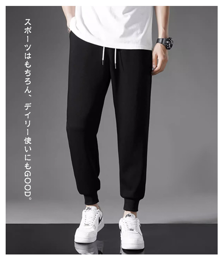 【ジョガーパンツ】【S~5XL】【男女兼用】細すぎずほどよくゆとりがあるシルエットで設計♪オシャレなジョガーパンツ♪ジョギング、ダンス、フィットネスなど、さまざまなシーンで心地よく着用できます。ウエスト周りや、ヒップ、脚のラインなど気になるところをカバーしながらも、裾はすっきりと仕上げ美脚効果を計算したデザインです♪軽くてさらっとした素材で、着心地抜群。スポーツはもちろん、デイリー使いにもGOOD。汗をかいてもサラっとした着心地で、オールシーズン着用可能♪シンプルながらも存在感があるので、スニーカーとの相性も抜群です♪