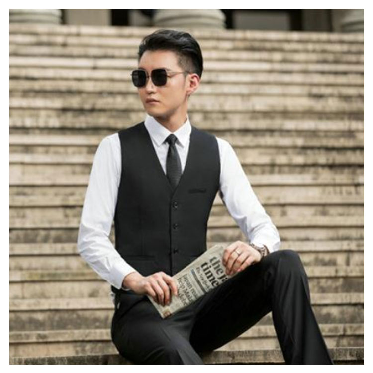 S~5XLサイズ!大きいサイズ!高級感のあるスーツ素材を使用した男性用ジレベスト!スリム作りで全体のラインがとてもキレイでスマートな印象に。上品さ漂う5つのボタンは開け閉めで雰囲気が変わります。バックベルトは、見た目もエレガントで、ゆるさ調節も簡単!(洗濯の際は金具をはずしてください)ワイシャツ、ジャケットと合わせてフォーマルに、Tシャツ等と合わせてカジュアルにスタイルに合わせて様々な着こなしが出来る定番アイテムです♪