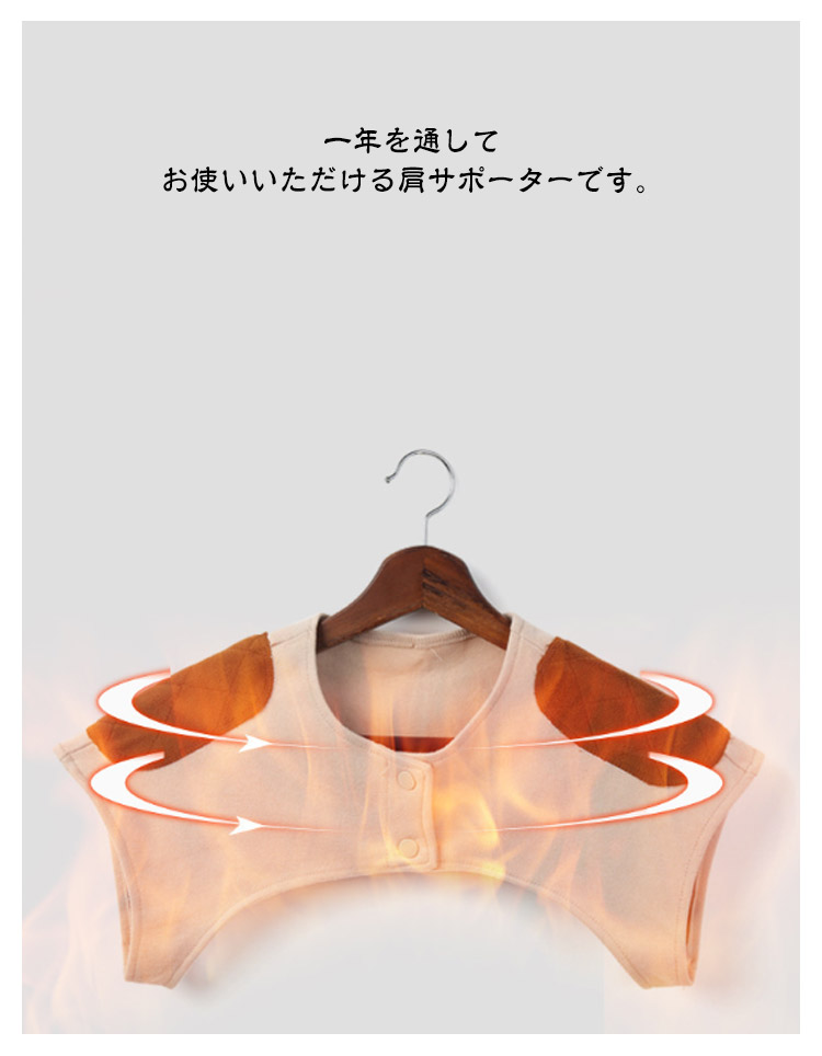 | 肩こりや冷えの人におすすめの肩温めサポーターです。 肩甲骨から肩周りをやさしく温めて、身体の冷えを予防し肩こり防止にも役立ちます。 冬だけでなくクーラーで身体が冷える夏場にも活躍するアイテムです。 一年を通してお使いいただける肩サポーターです。 | |
