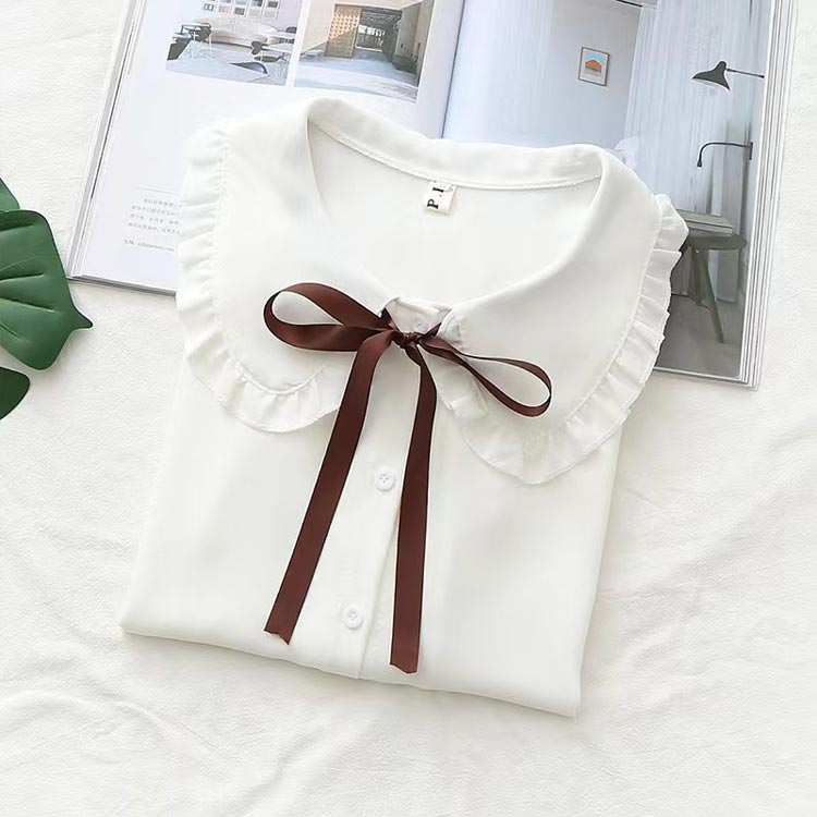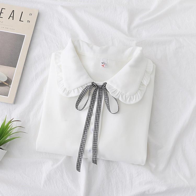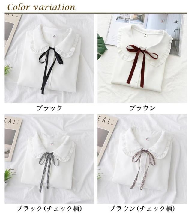清楚な印象を与えるリボン付きブラウス。各種コンクールの衣装・学級写真・クラス写真など、幅広いシーンでご利用頂けます。リボンは無地とチェック柄2タイプあり。容易に付け外しが可能です。