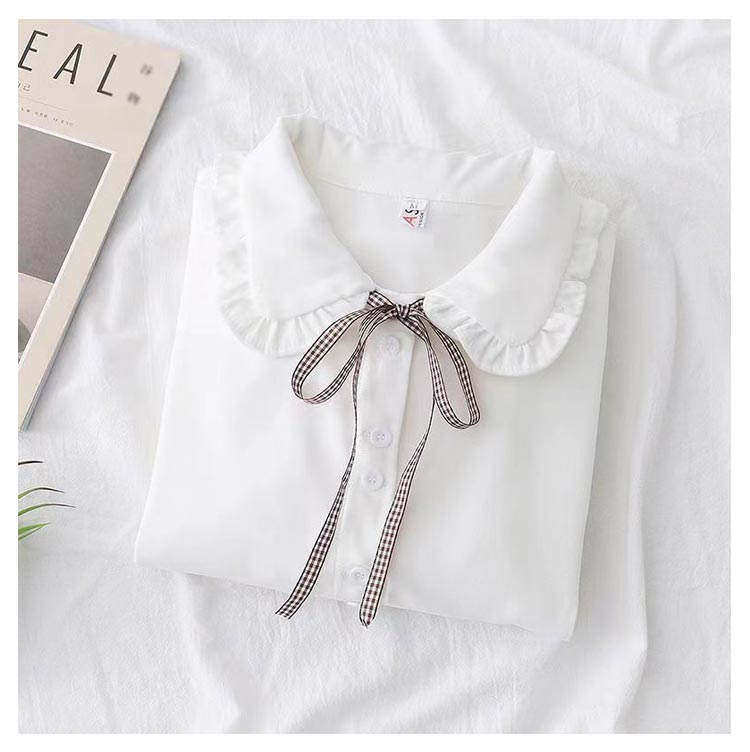 | 清楚な印象を与えるリボン付きブラウス。 各種コンクールの衣装?学級写真?クラス写真など、幅広いシーンでご利用頂けます。 リボンは無地とチェック柄2タイプあり。容易に付け外しが可能です。 | |