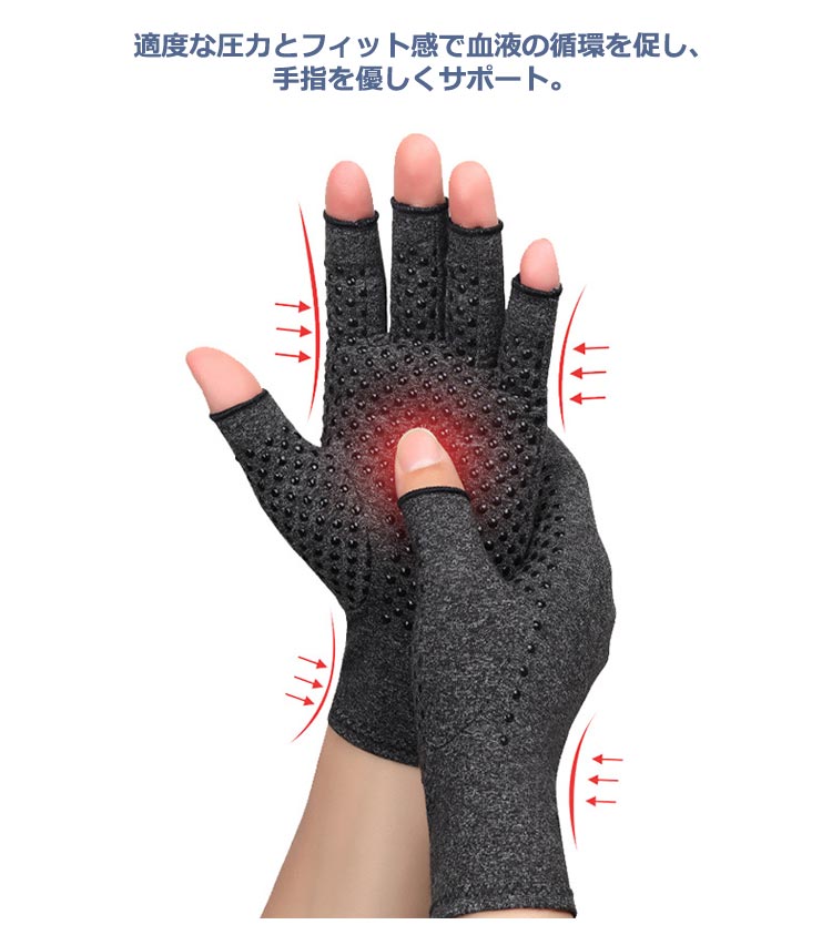 送料無料 着圧手袋 指なし 手指サポーター 手首サポーター 左右セット バネ指 関節炎 腱鞘炎 リウマチ 手首 親指 指 手袋サポーター 防滑加工 手の痛み 引き締め 負担軽減 マッサージ 指なし 滑り止め スポーツ パソコン スマホ 運転 グローブ 手首固定 オールシーズン
