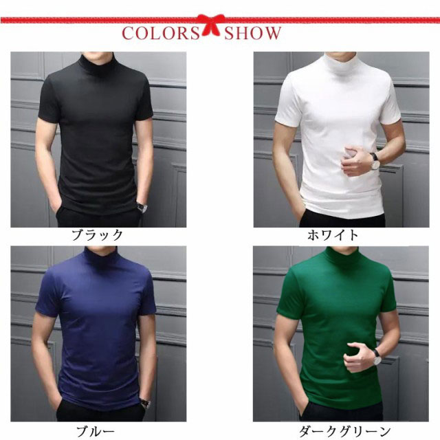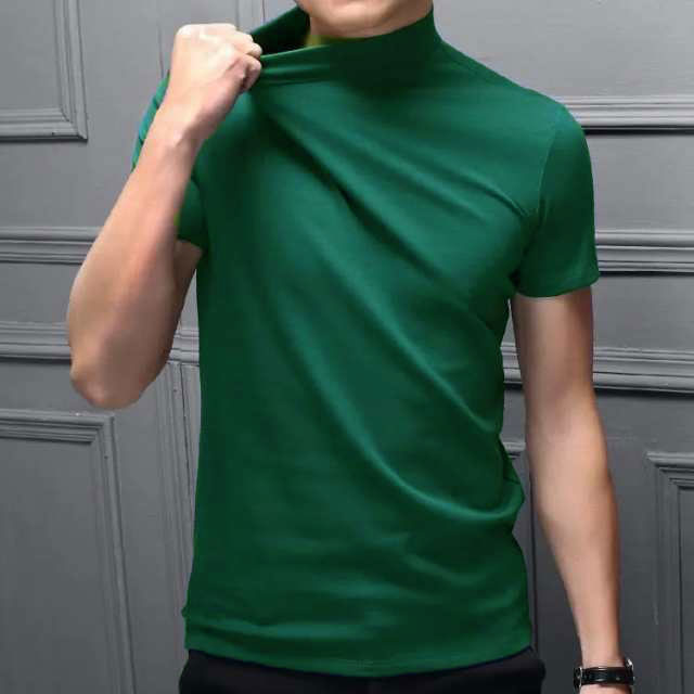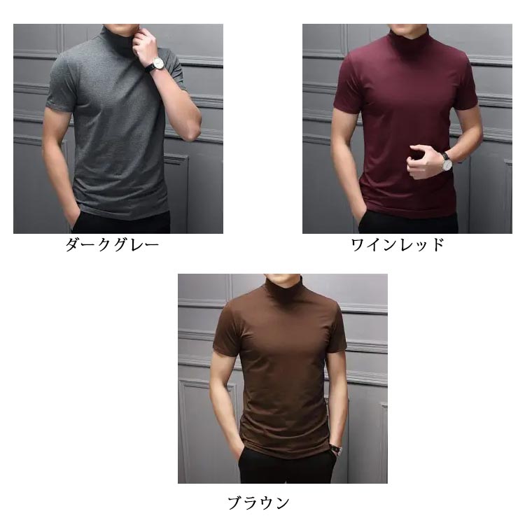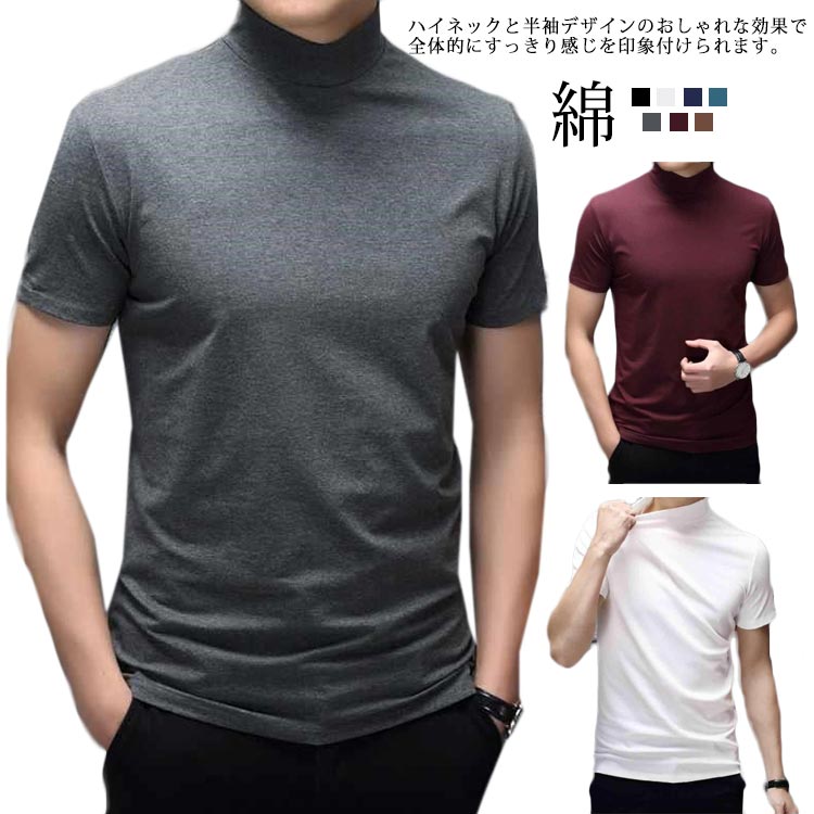 ハイネック 半袖 メンズ Tシャツ ゴルフウェア モックネックシャツ トップス 春夏 カットソー 送料無料 スポーツウェア インナー ティーシャツ 無地 カジュアル シンプル 作業着 サッカー テニス 父の日