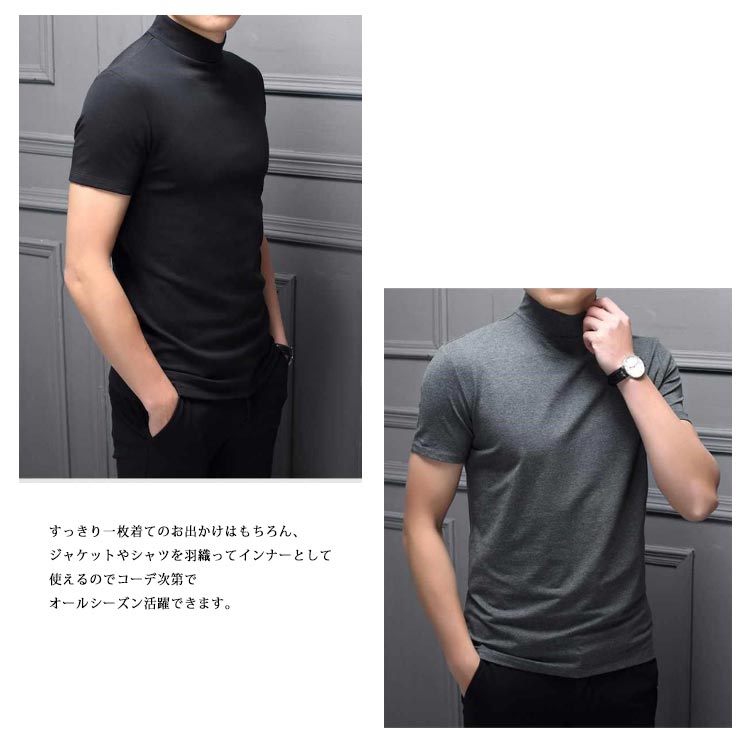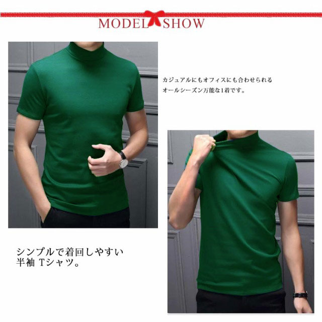 ハイネックと半袖デザインのおしゃれな効果で全体的にすっきり感じを印象付けられます。シンプルで着回しやすい半袖 Tシャツ。カジュアルにもオフィスにも合わせられるオールシーズン万能な1着です。すっきり一枚着てのお出かけはもちろん、ジャケットやシャツを羽織ってインナーとして使えるのでコーデ次第でオールシーズン活躍できます。
