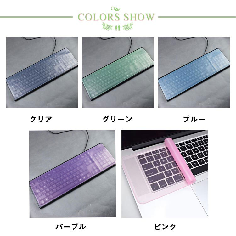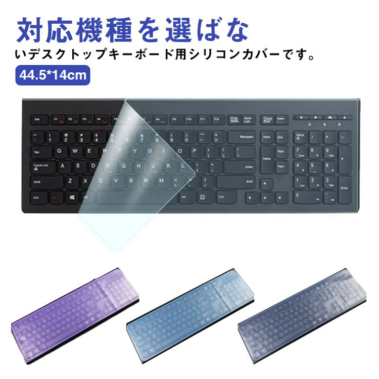 【送料無料】キーボードカバー デスクトップ用 マルチカバー シリコンカバー 透明カバー 鍵盤 保護カバー 薄型 伸縮 フィット 指紋防止 埃対策 44.5*14cm フリーサイズ カット可能 クリア グリーン ブルー パープル ピンク