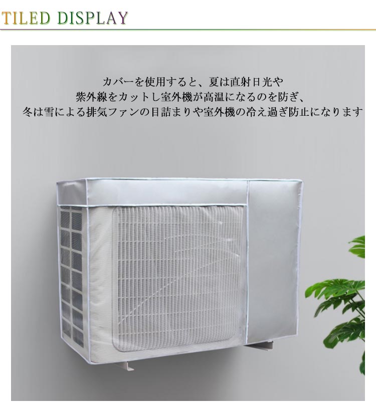 | エアコン室外機カバー 装着簡単·取り外し不要 カバーを使用すると、夏は直射日光や紫外線をカットし室外機が高温になるのを防ぎ、冬は雪による排気ファンの目詰まりや室外機の冷え過ぎ防止になります オールシーズンに使用可能 | |
